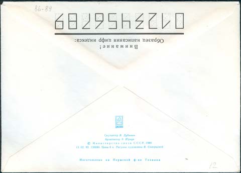 8986 13 февраля 1989 г. 5 к. В. Скворцова 15,00 5,00