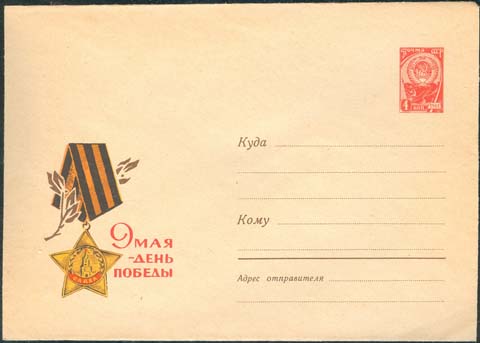 1966 г. Орден Славы 1-й степени и лавровая ветвь. Текст: "9 мая - день победы".