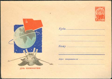 1967 г. Автоматическая станция "Луна-9". Текст: "День космонавтики".