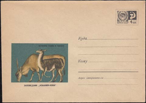 1968 г. Антилопа и лама. Текст: "Антилопа канна и лама Гуанако".