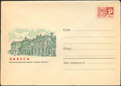 1968 г. Здание вокзала. Текст: "Калуга. Железнодорожный вокзал станции Калуга-1".