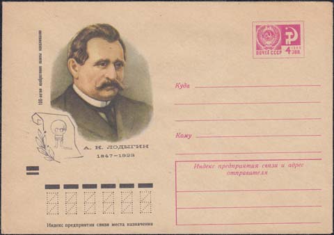 1972 г. 100-летие изобретения лампы накаливания. А.Н.Лодыгин 1847-1923.