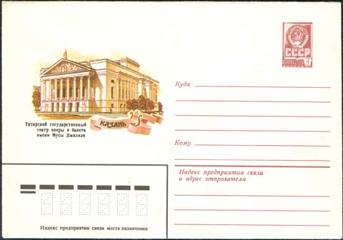 1979 г. Здание театра. Текст: "Казань. Татарский государственный театр оперы и балета имени Мусы Джалиля".