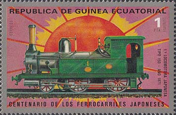 1972 г. Сентябрь. 100 лет железным дорогам Японии. Разм. по перфорации 57 х 35 мм. Многоцветная печать на белой бумаге. Зубц. 13 1/4 и Б.З. В центре паровозы различных моделей.