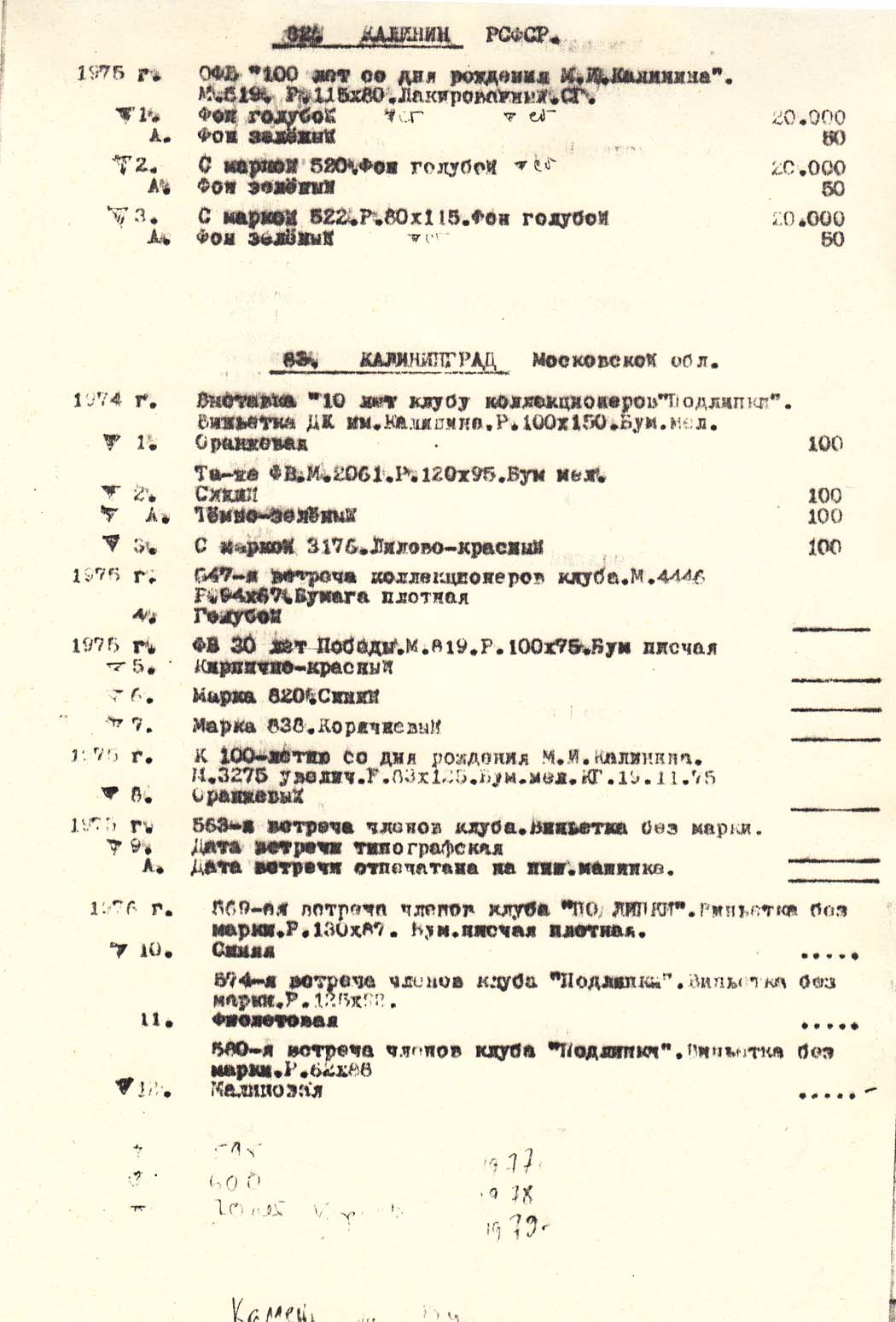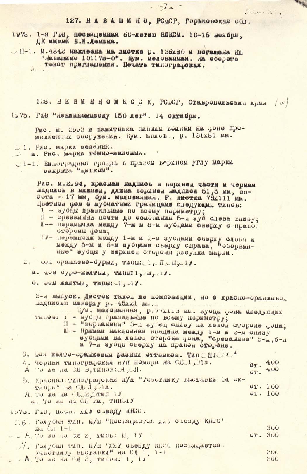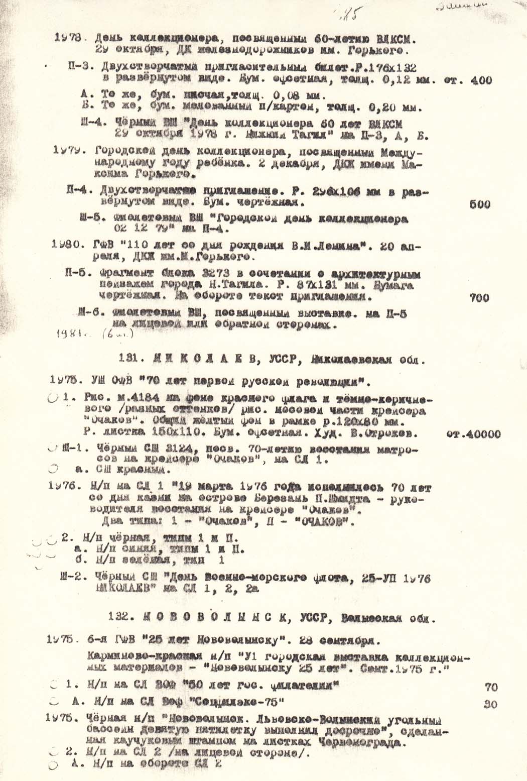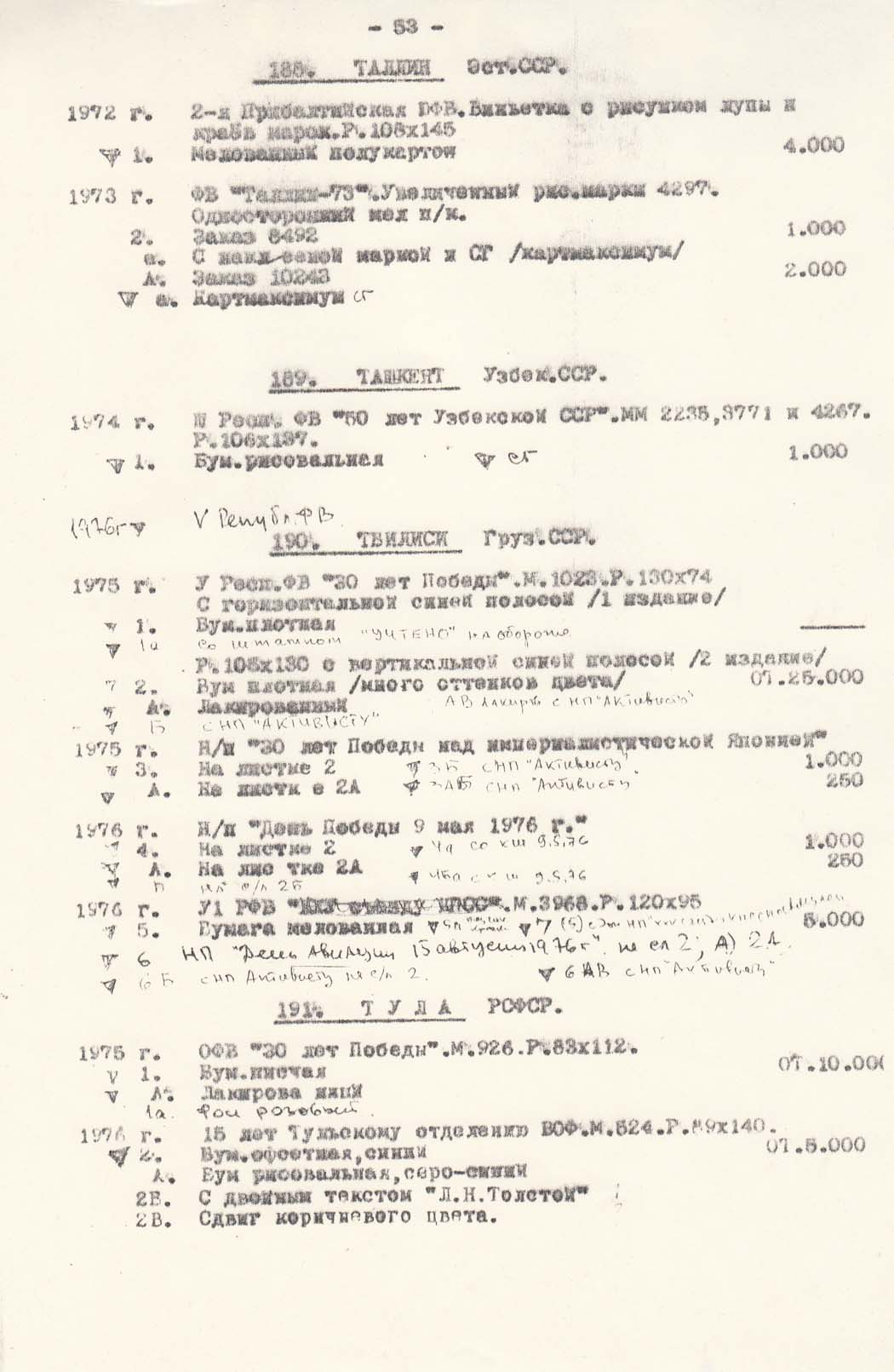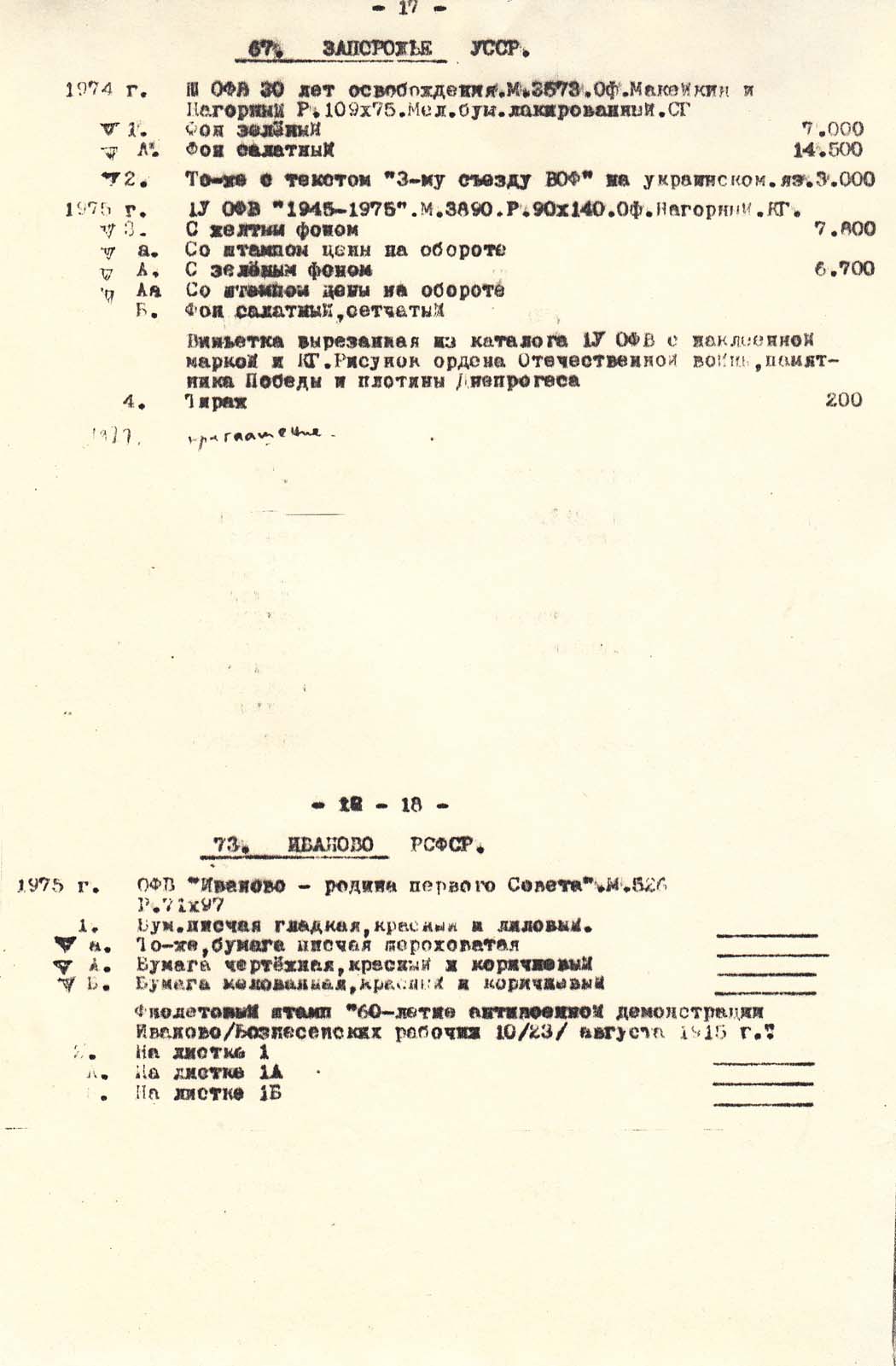 В.В.Нейзель. Каталог сувенирных листков выпущенных отделениями ВОФ.