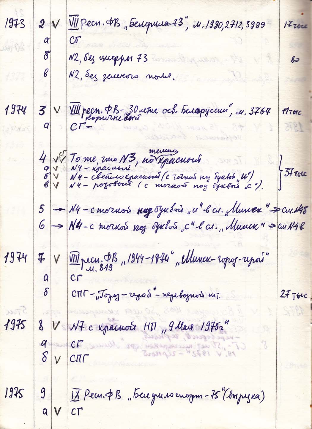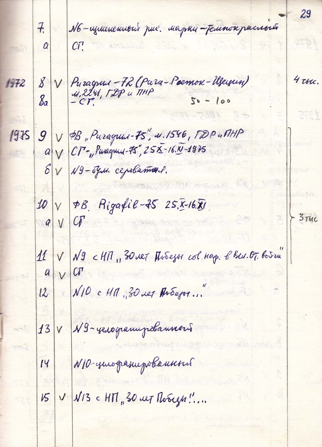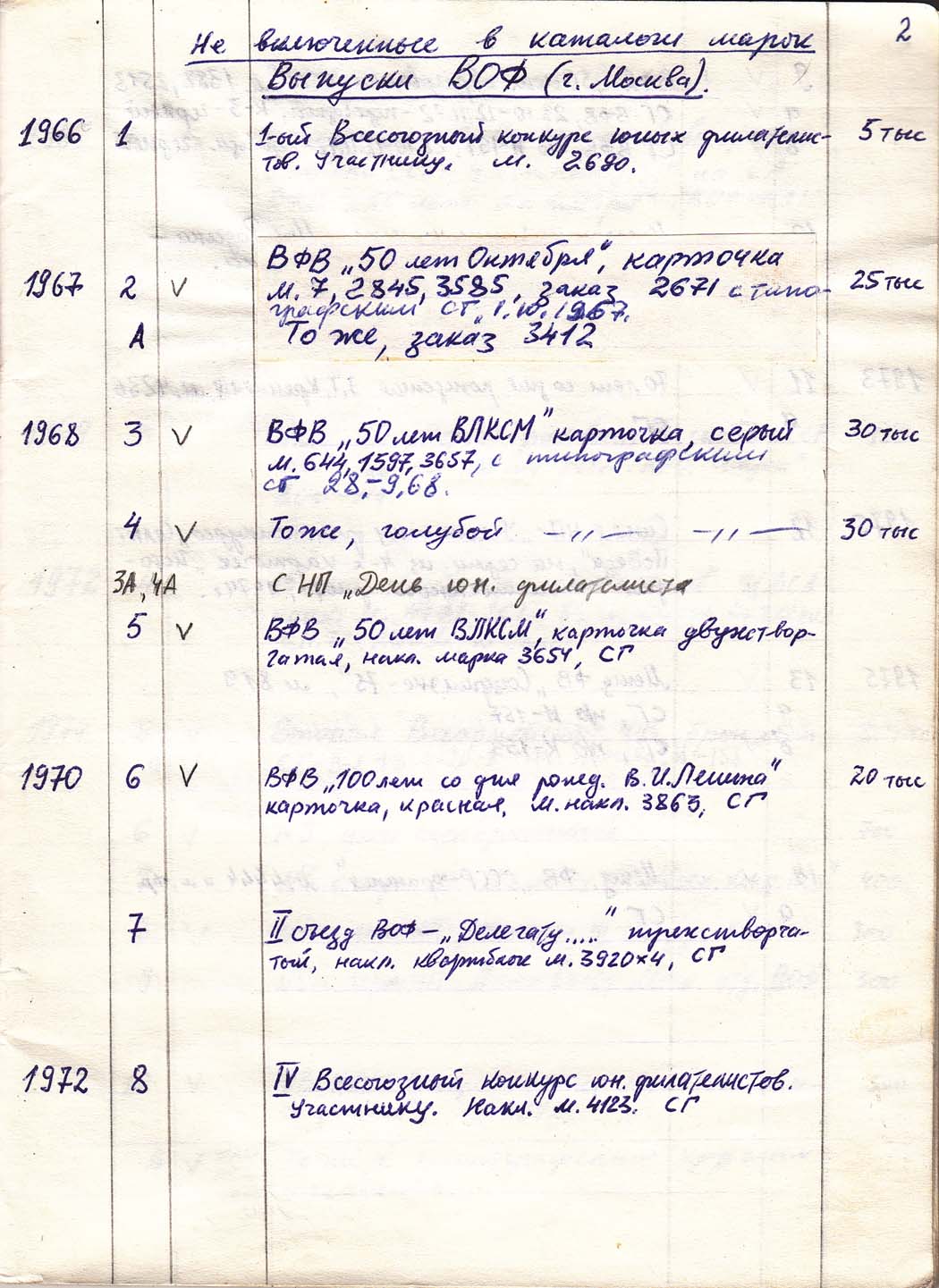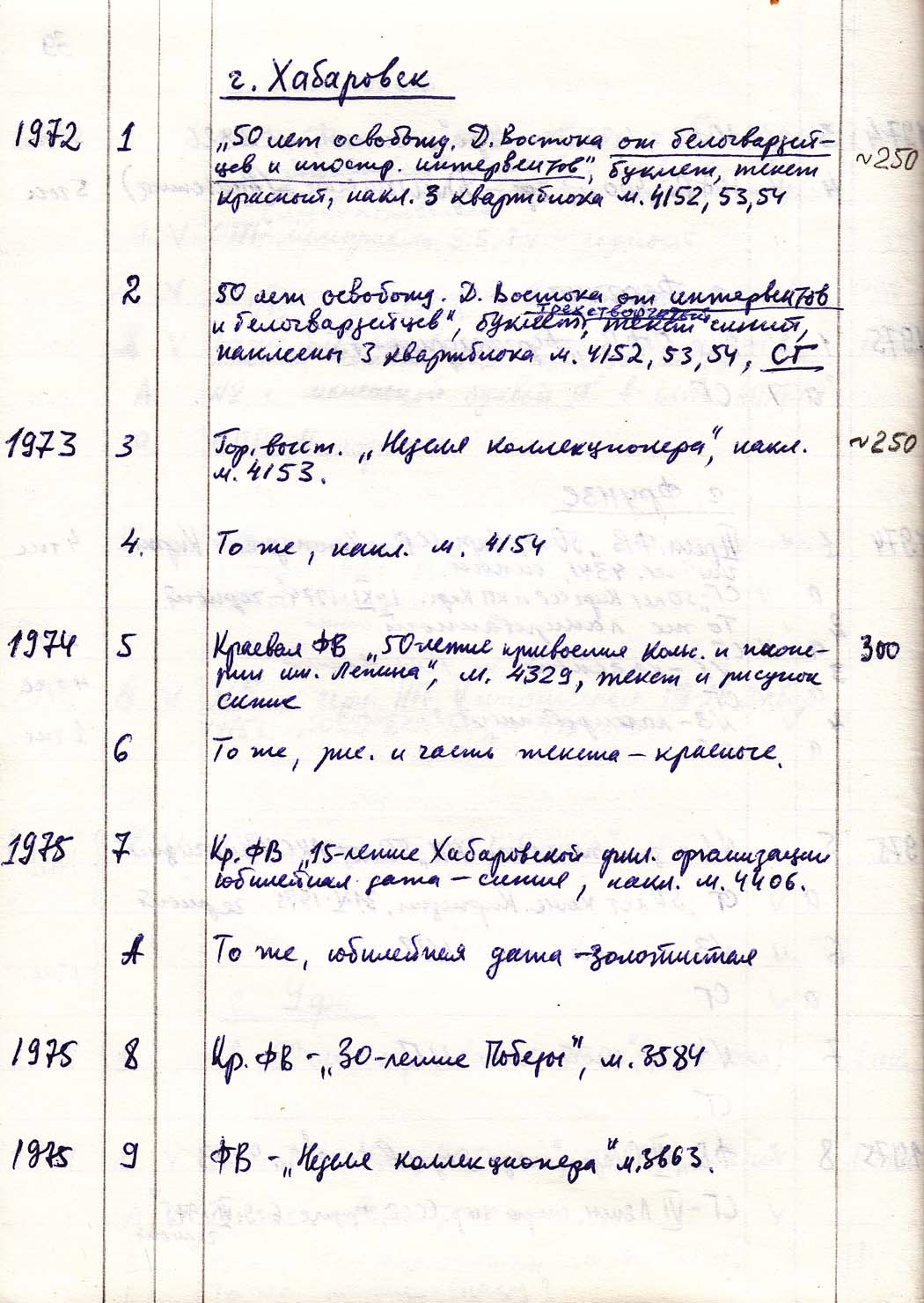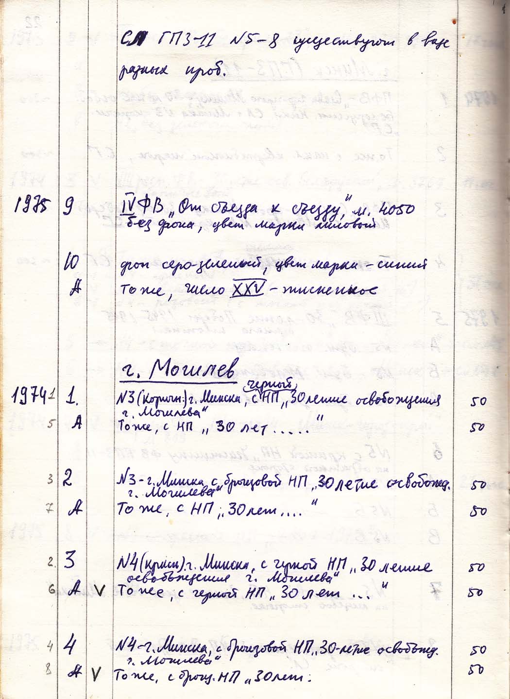 Перечень сувенирных филателистических изданий 1946 - 1976 гг. Рукопись. Автор: неизвестен. Год: неизвестен.