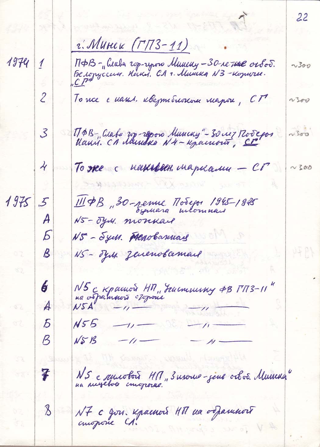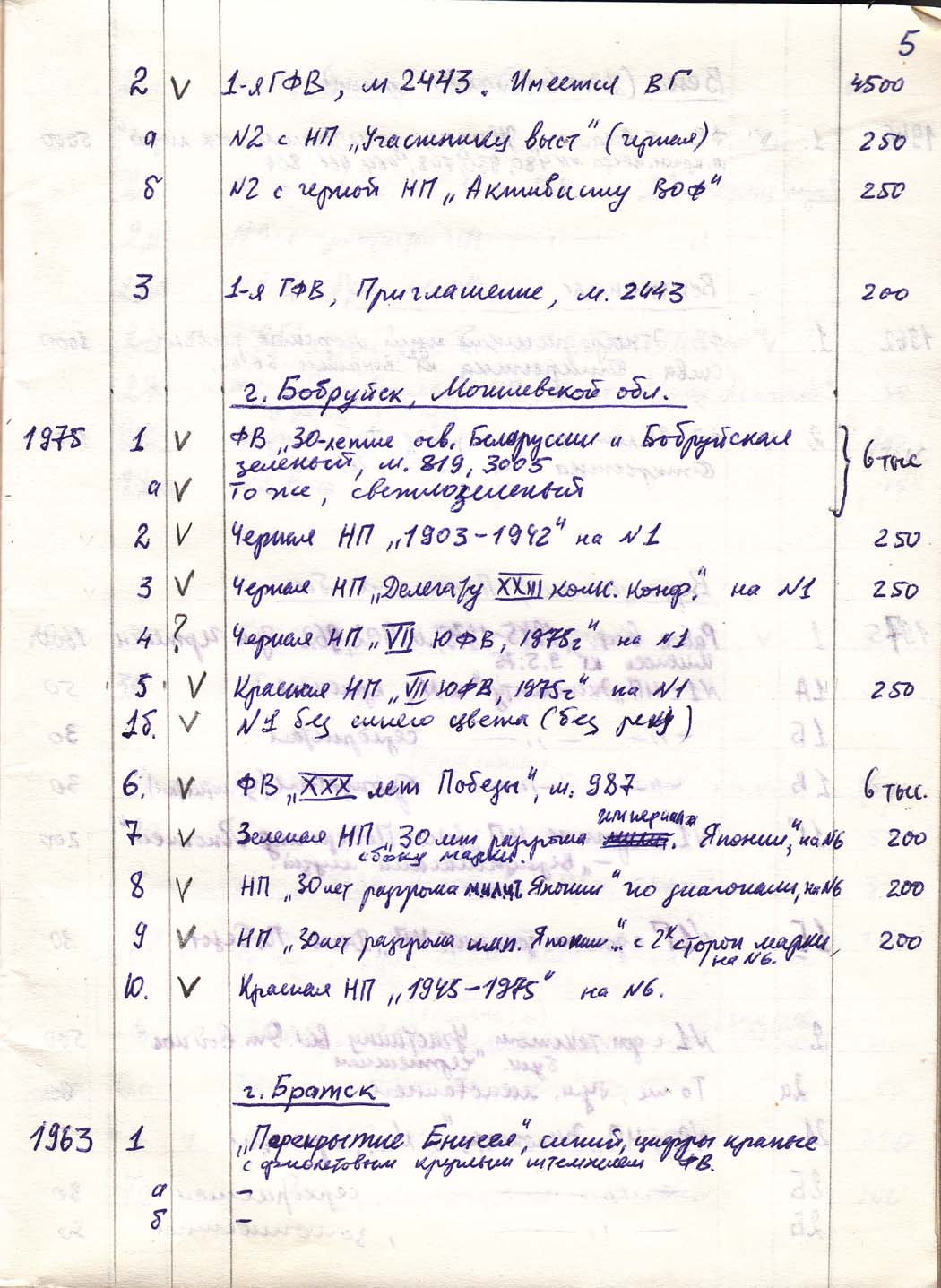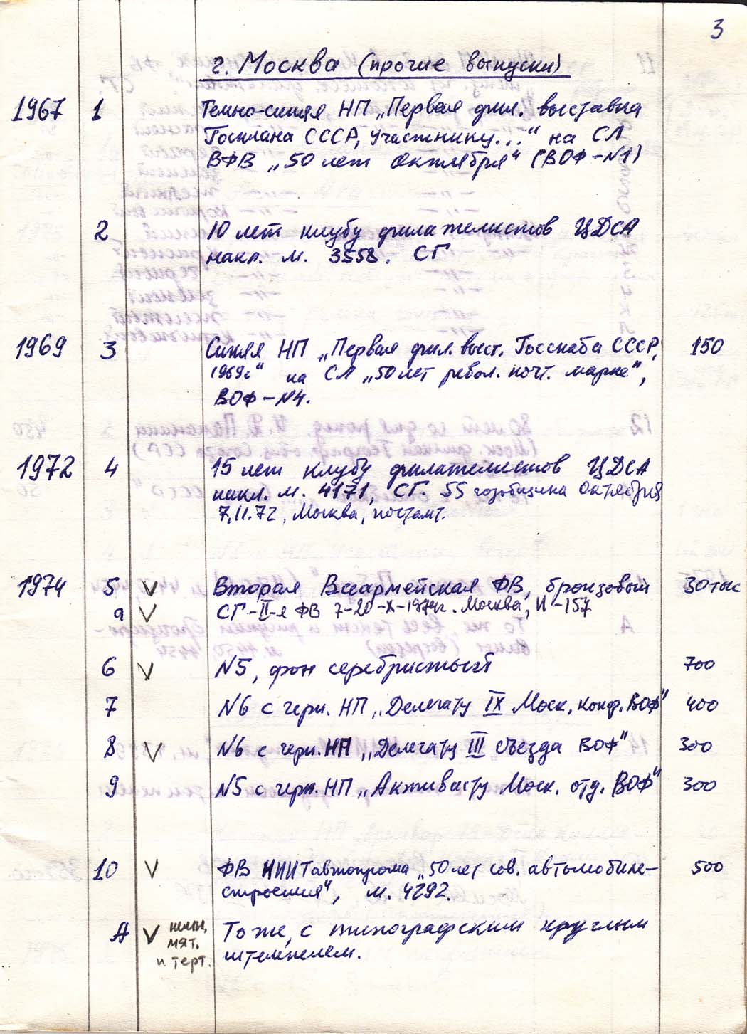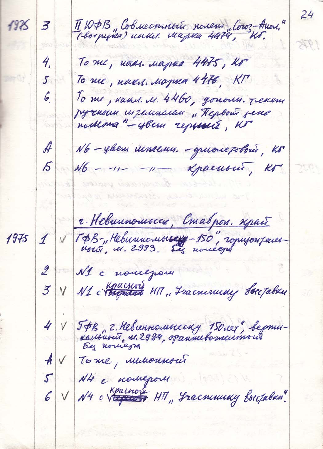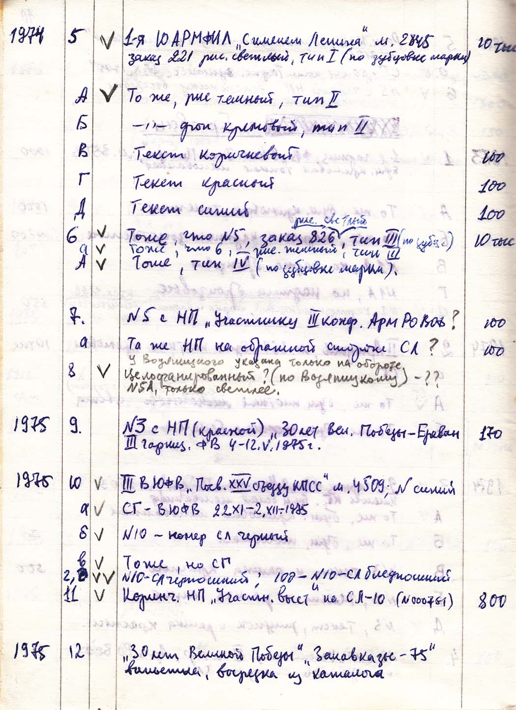 Перечень сувенирных филателистических изданий 1946 - 1976 гг. Рукопись. Автор: неизвестен. Год: неизвестен.
