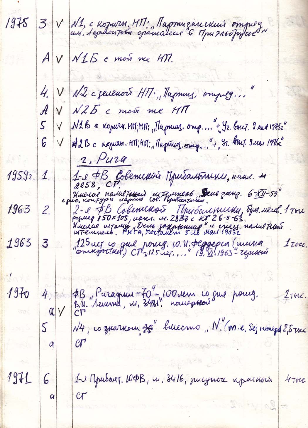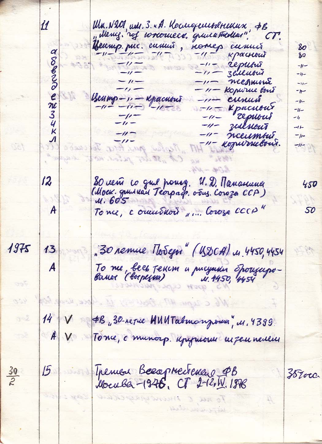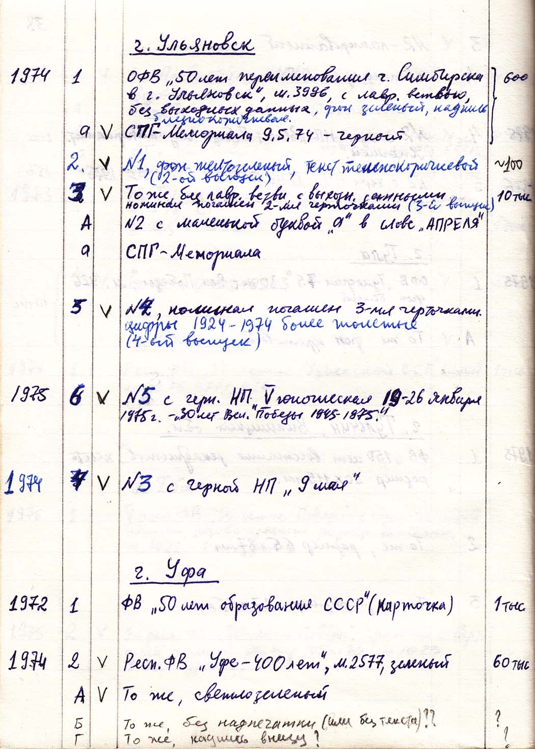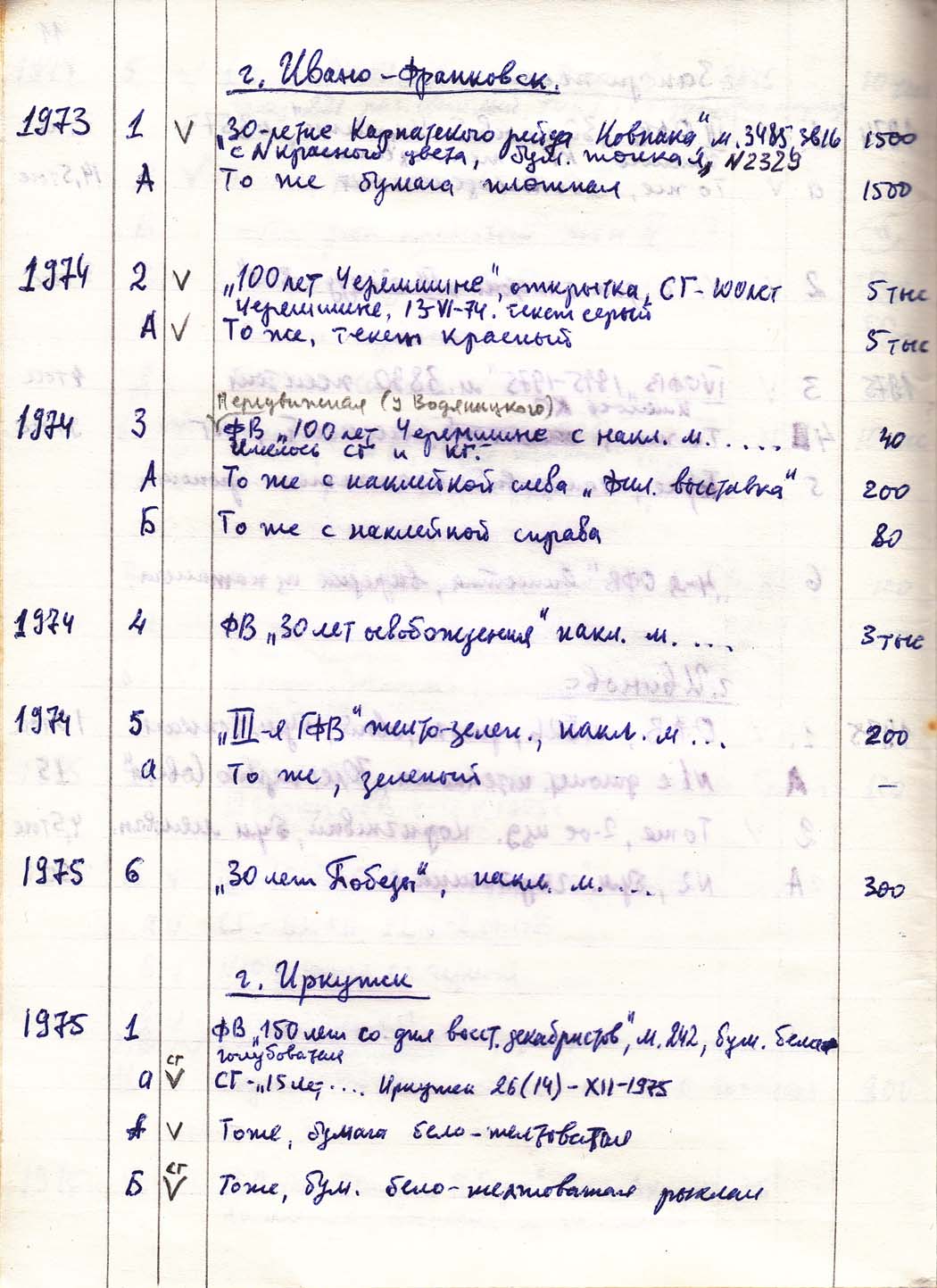 Перечень сувенирных филателистических изданий 1946 - 1976 гг. Рукопись. Автор: неизвестен. Год: неизвестен.