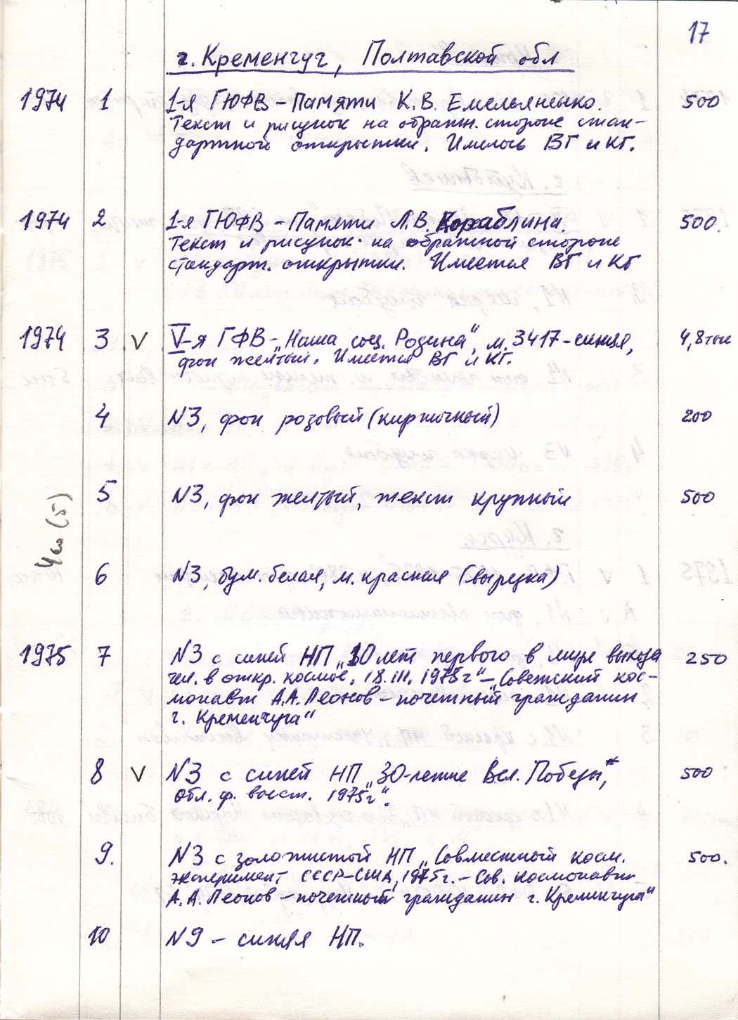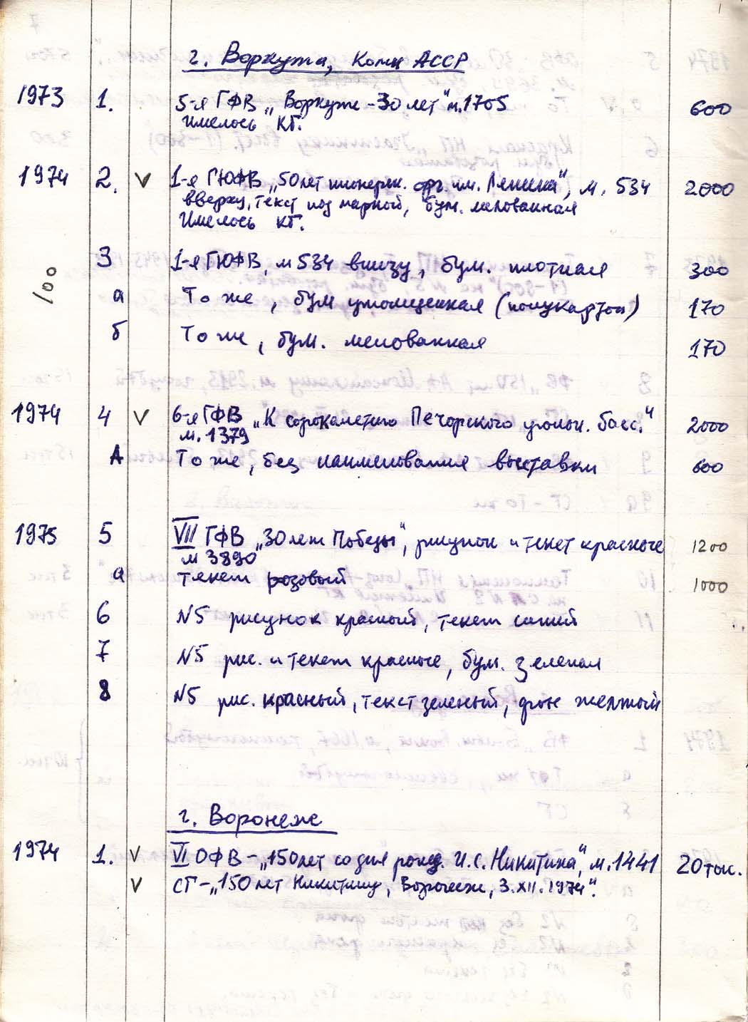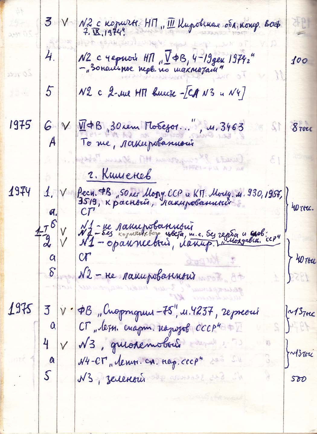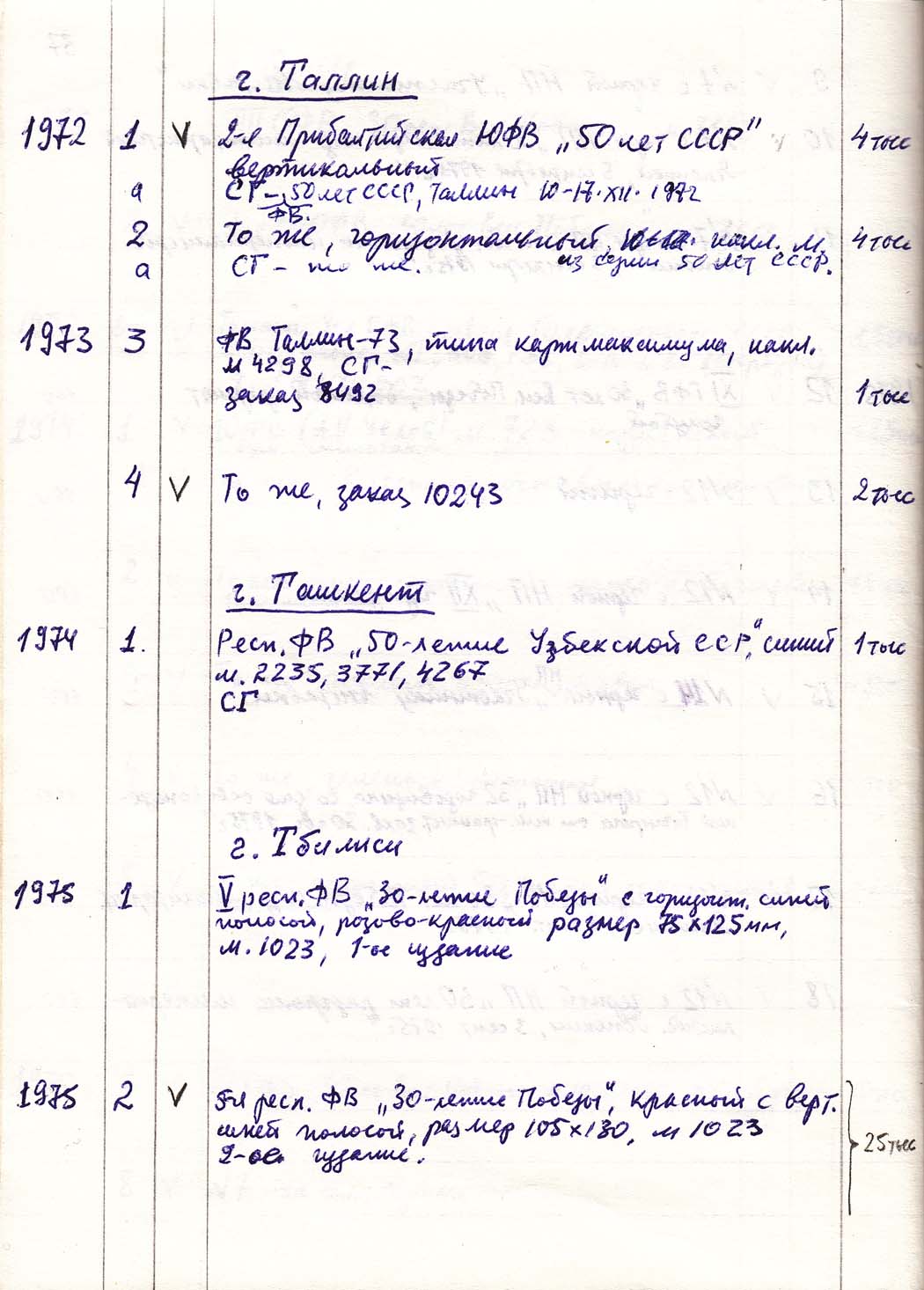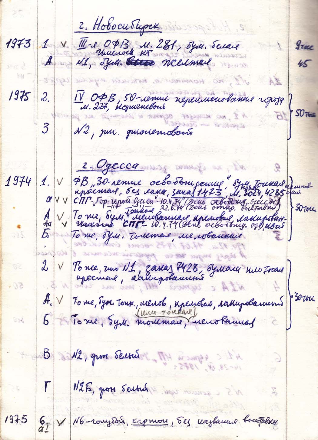 Перечень сувенирных филателистических изданий 1946 - 1976 гг. Рукопись. Автор: неизвестен. Год: неизвестен.