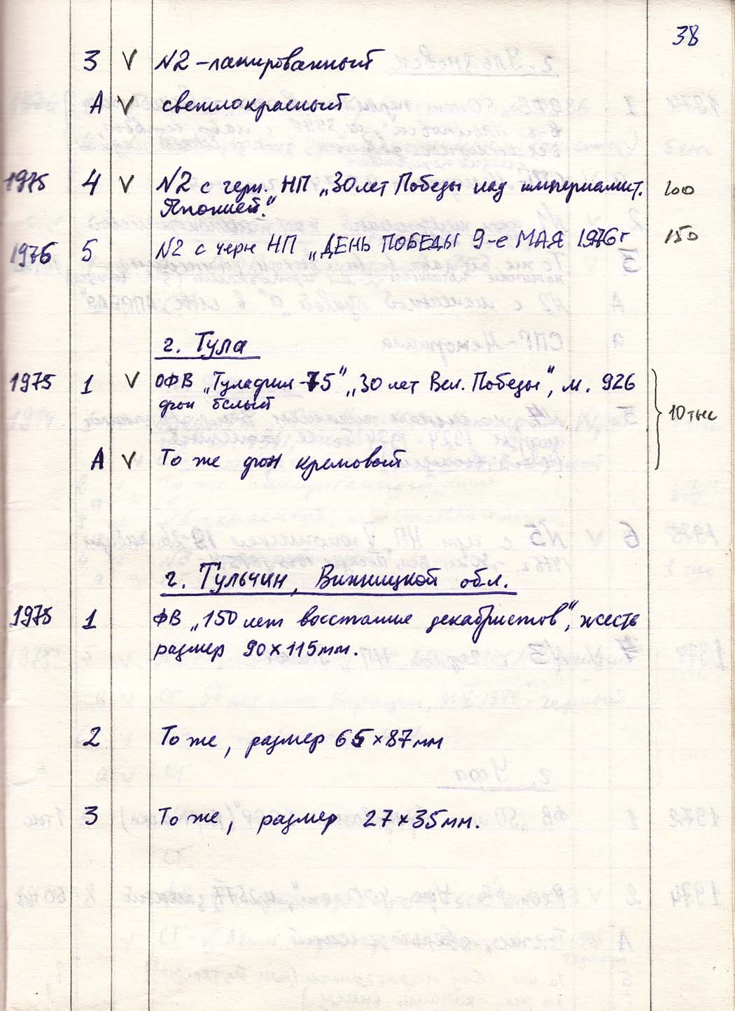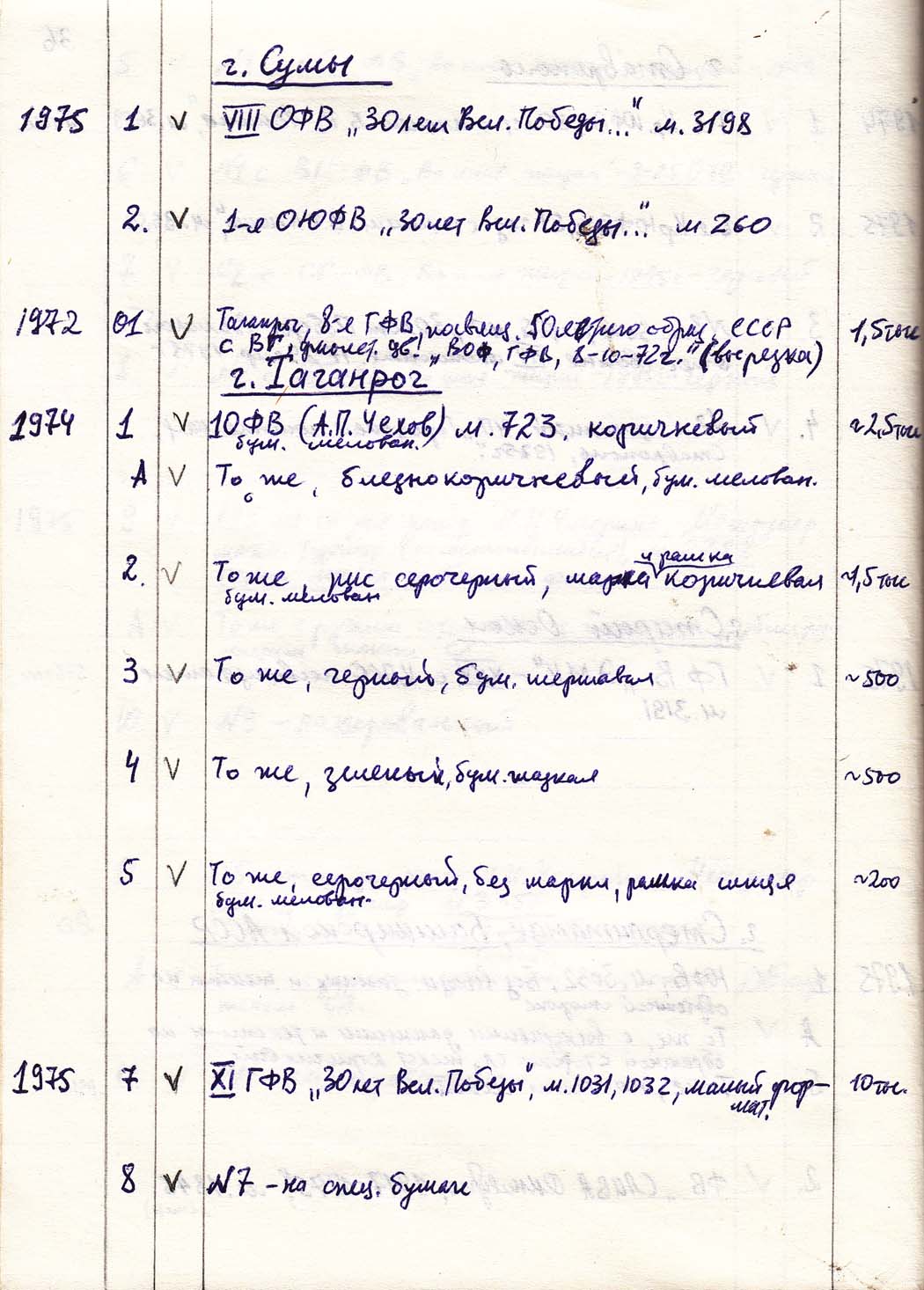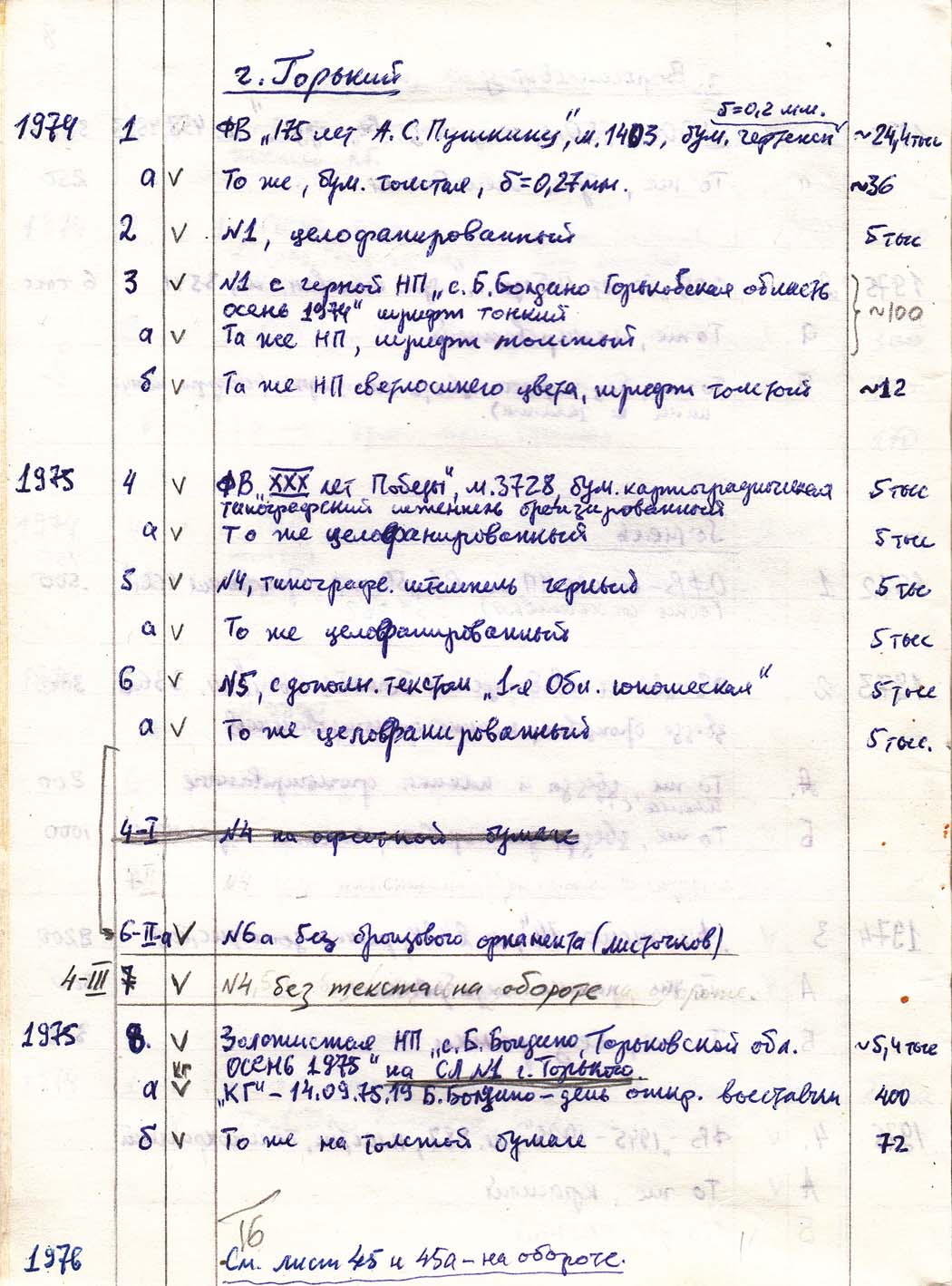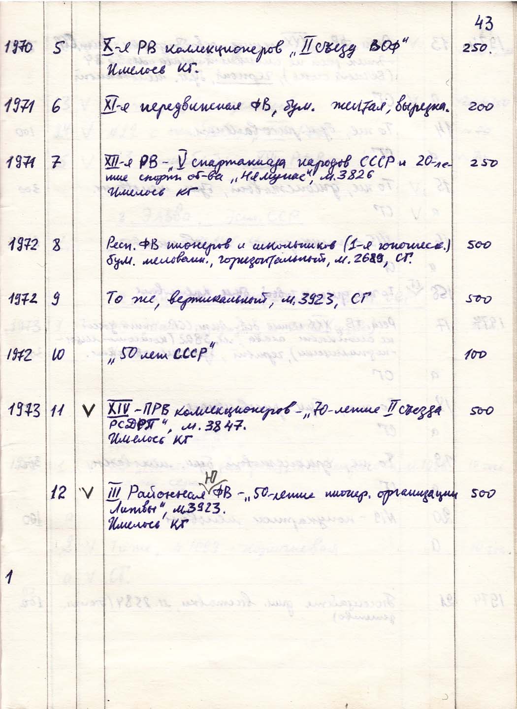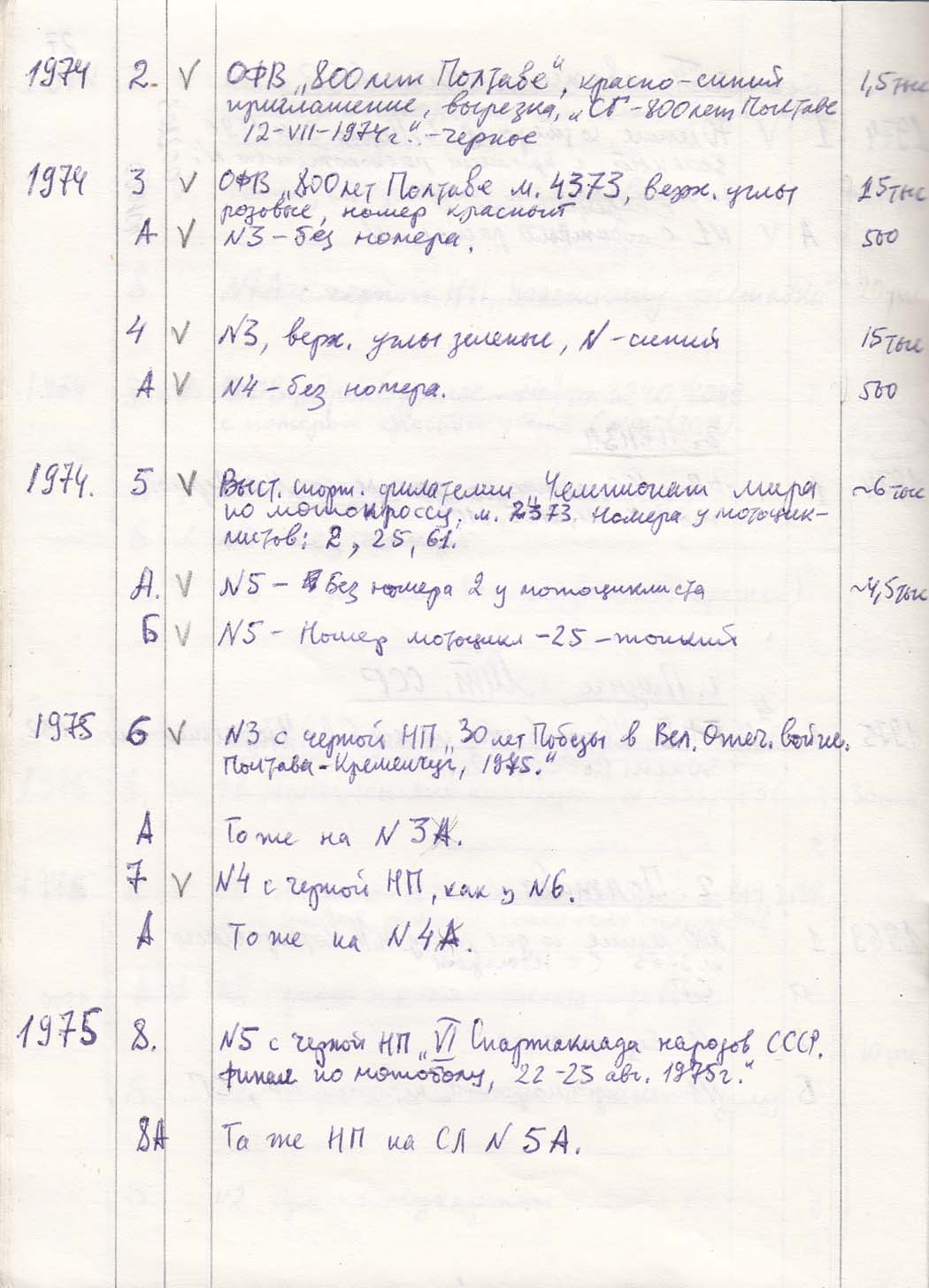 Перечень сувенирных филателистических изданий 1946 - 1976 гг. Рукопись. Автор: неизвестен. Год: неизвестен.