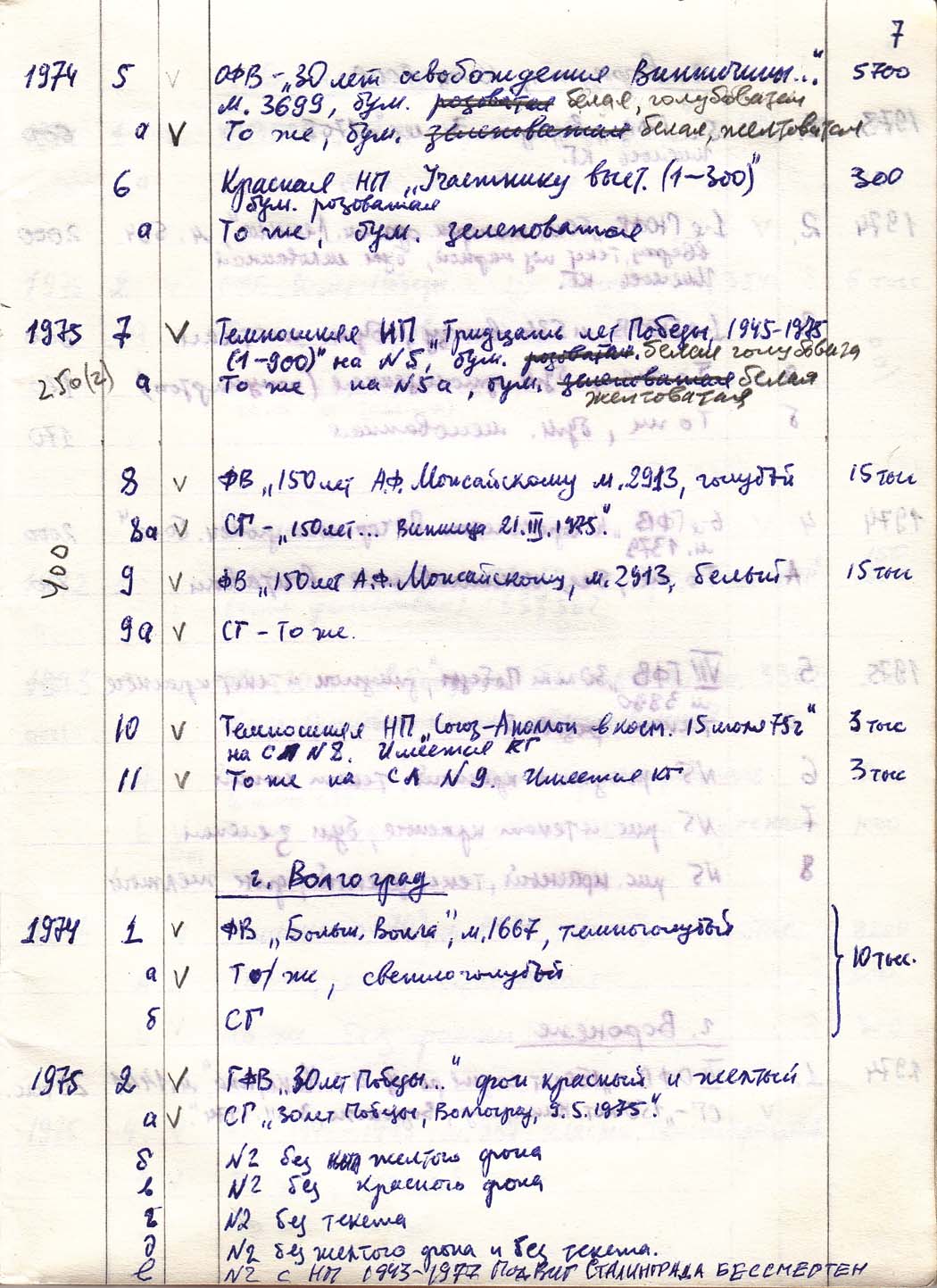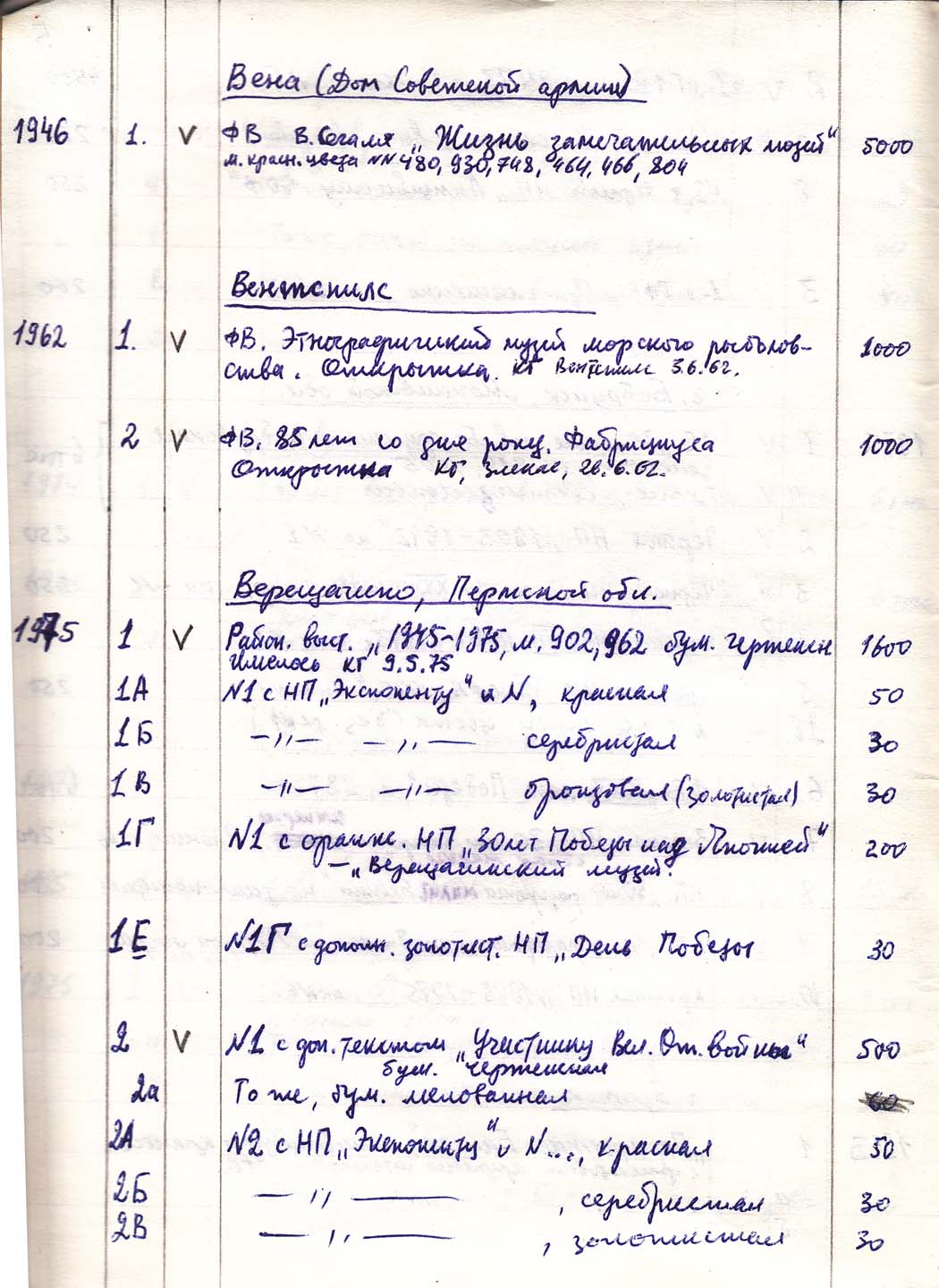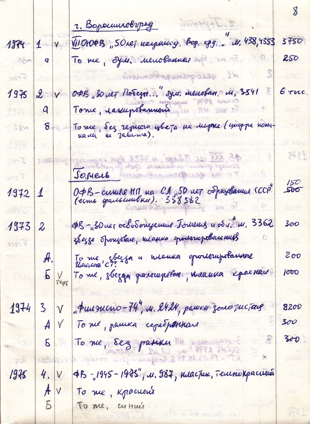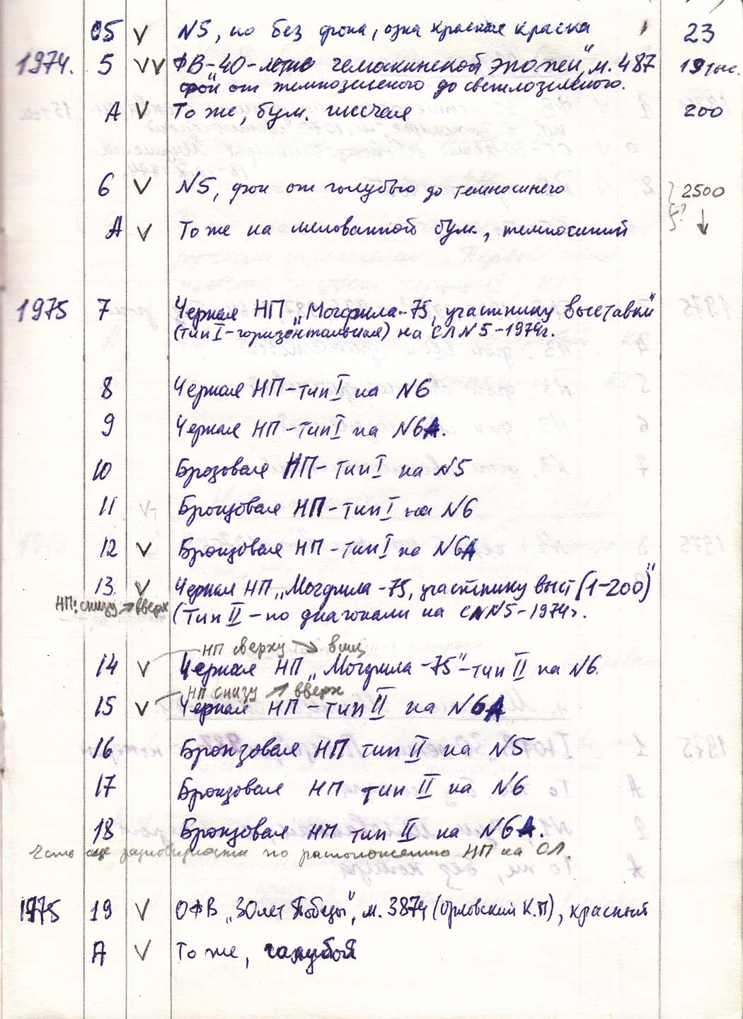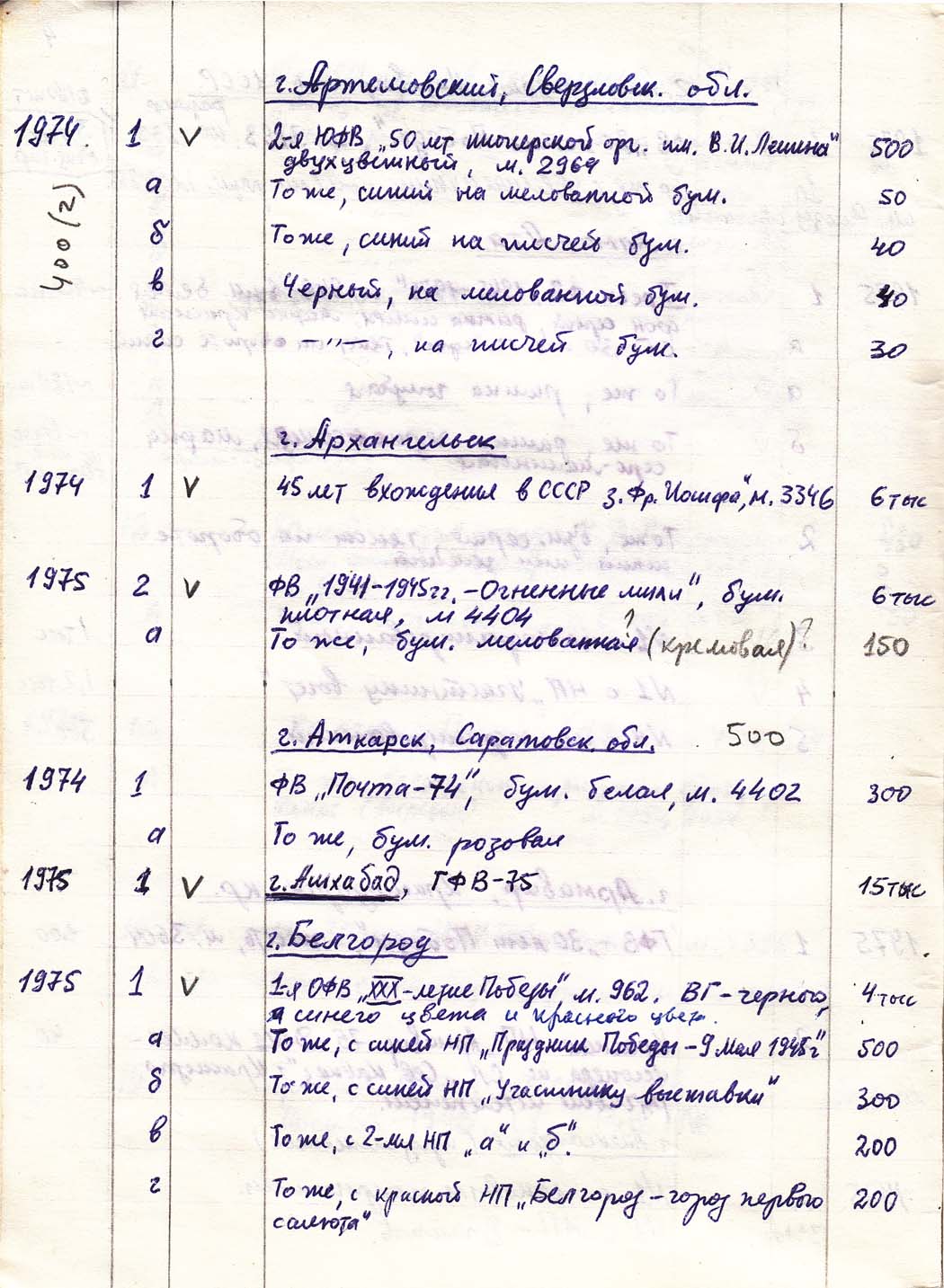 Перечень сувенирных филателистических изданий 1946 - 1976 гг. Рукопись. Автор: неизвестен. Год: неизвестен.
