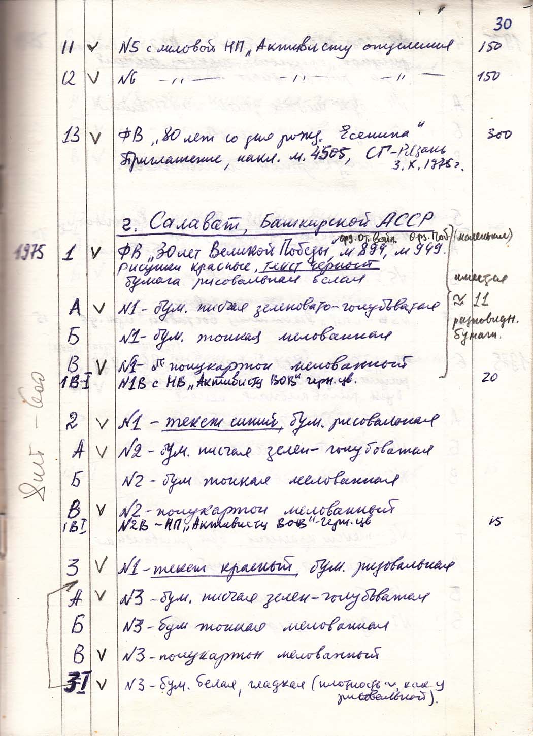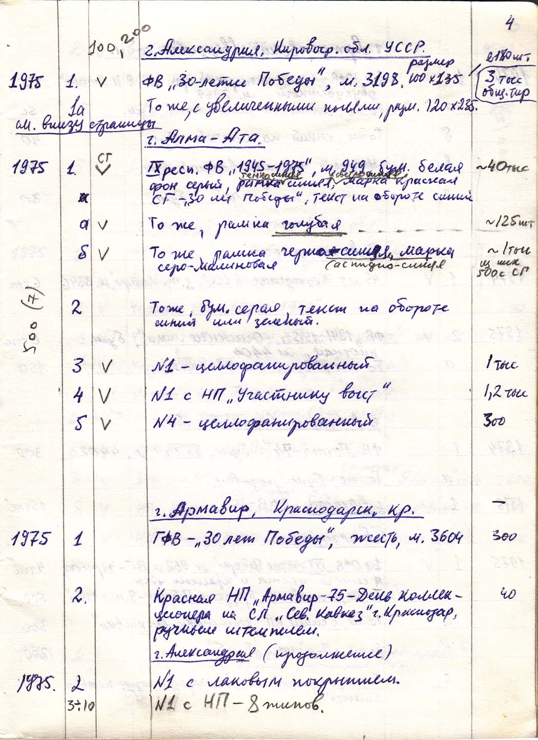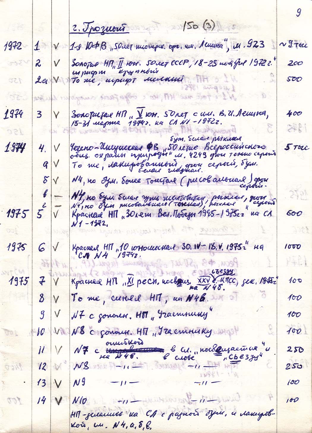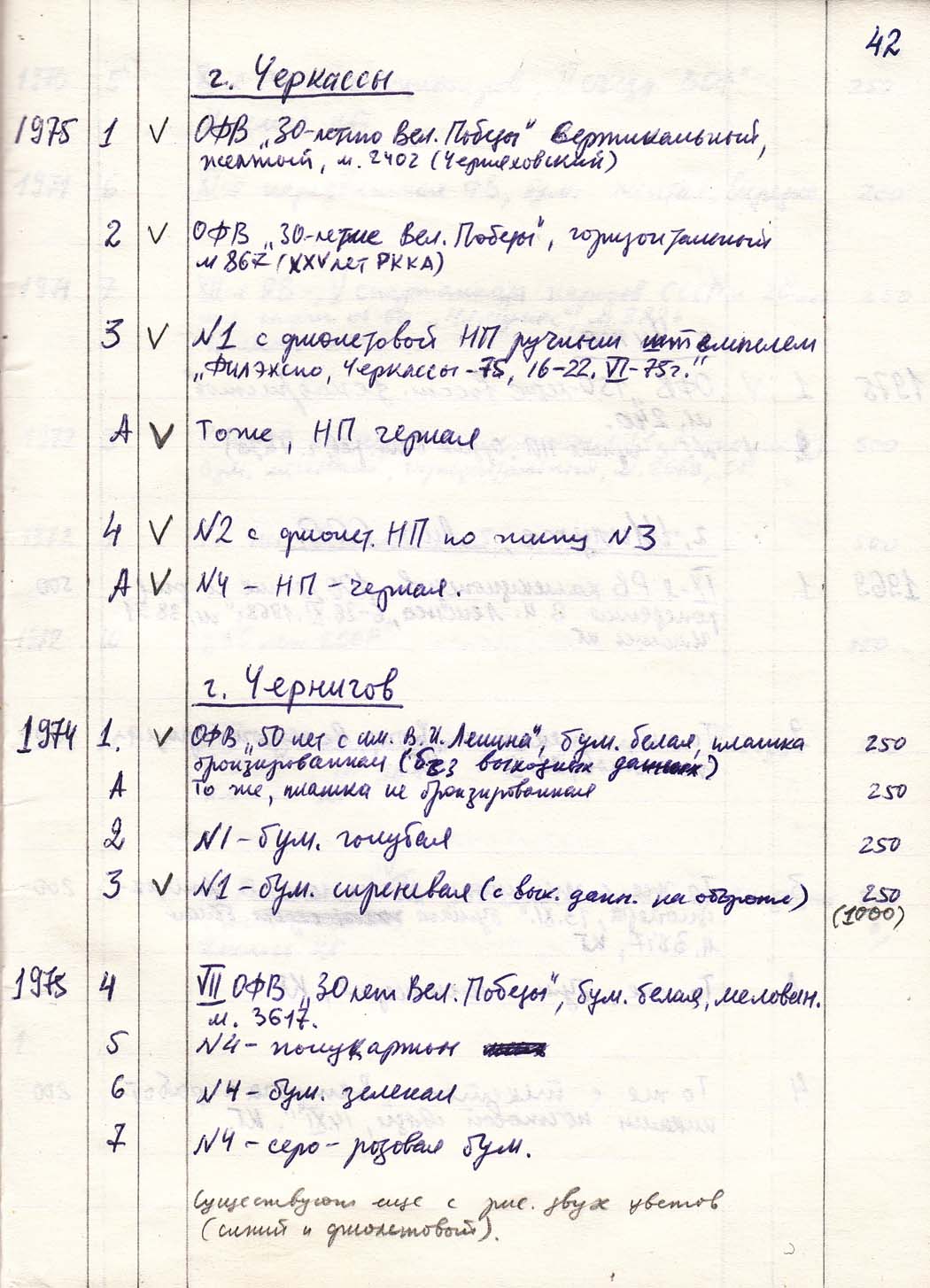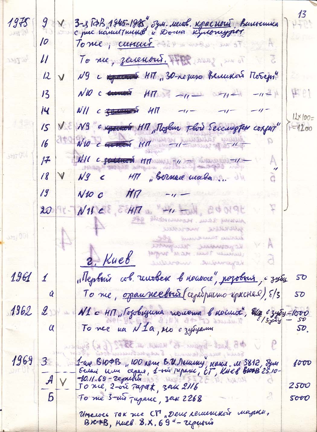 Перечень сувенирных филателистических изданий 1946 - 1976 гг. Рукопись. Автор: неизвестен. Год: неизвестен.