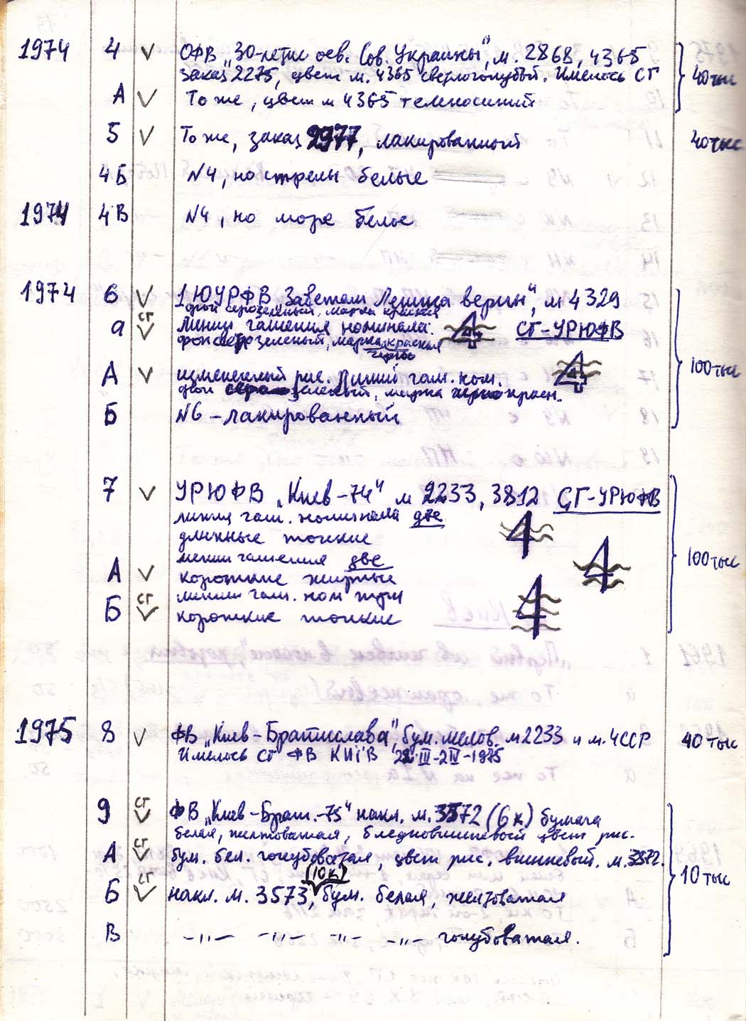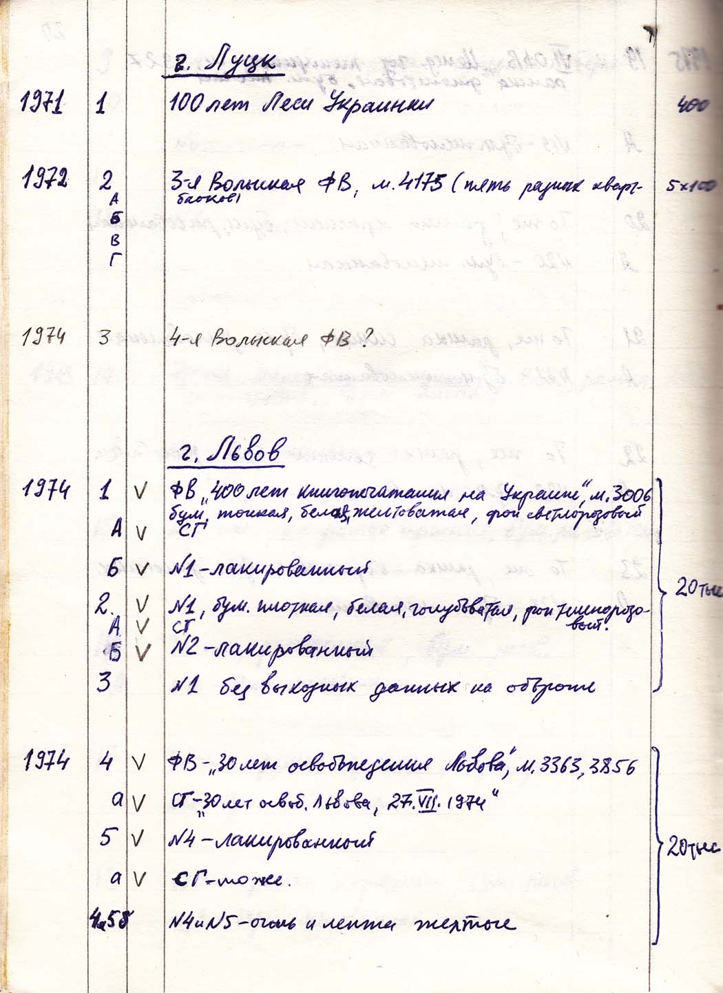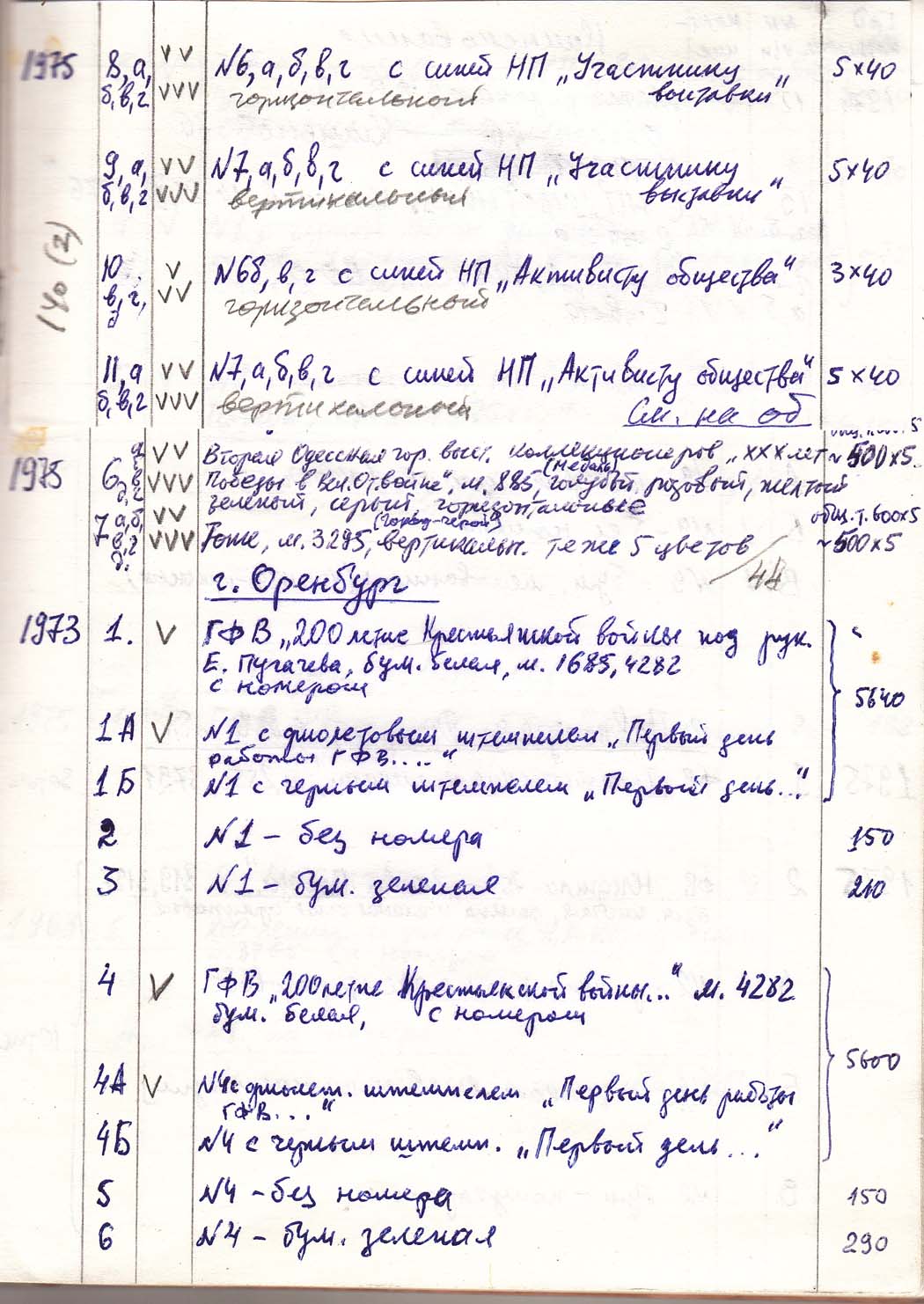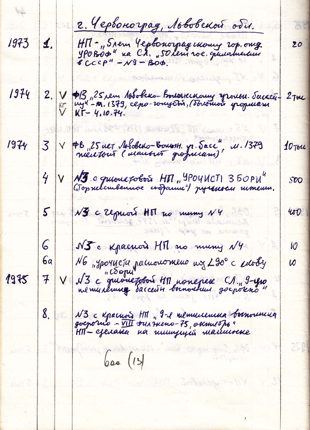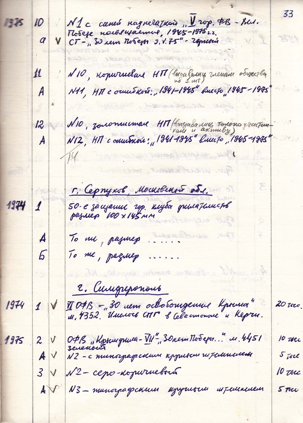 Перечень сувенирных филателистических изданий 1946 - 1976 гг. Рукопись. Автор: неизвестен. Год: неизвестен.