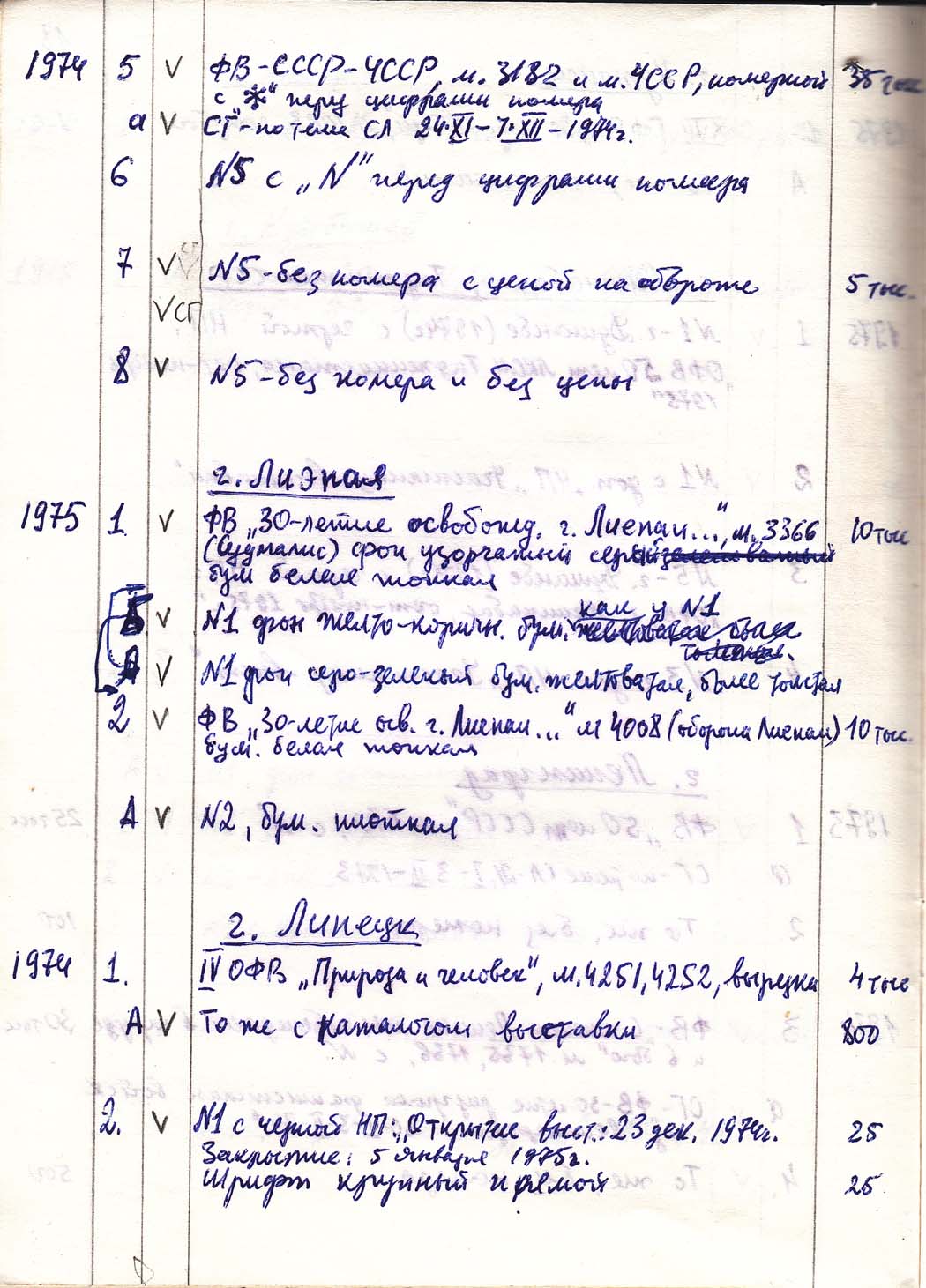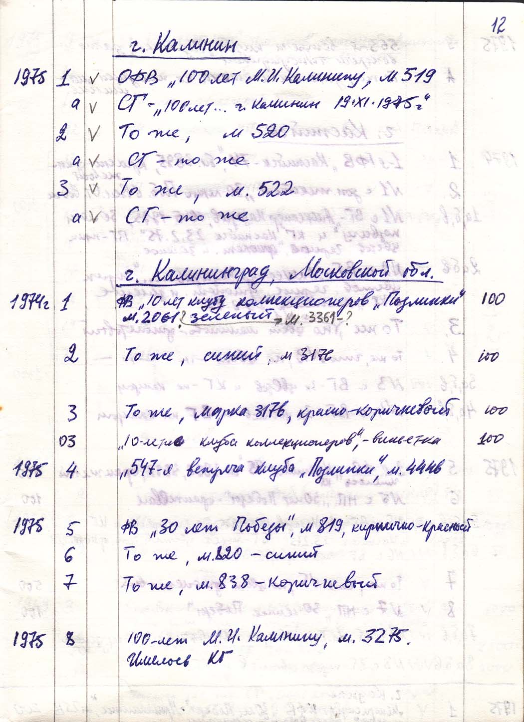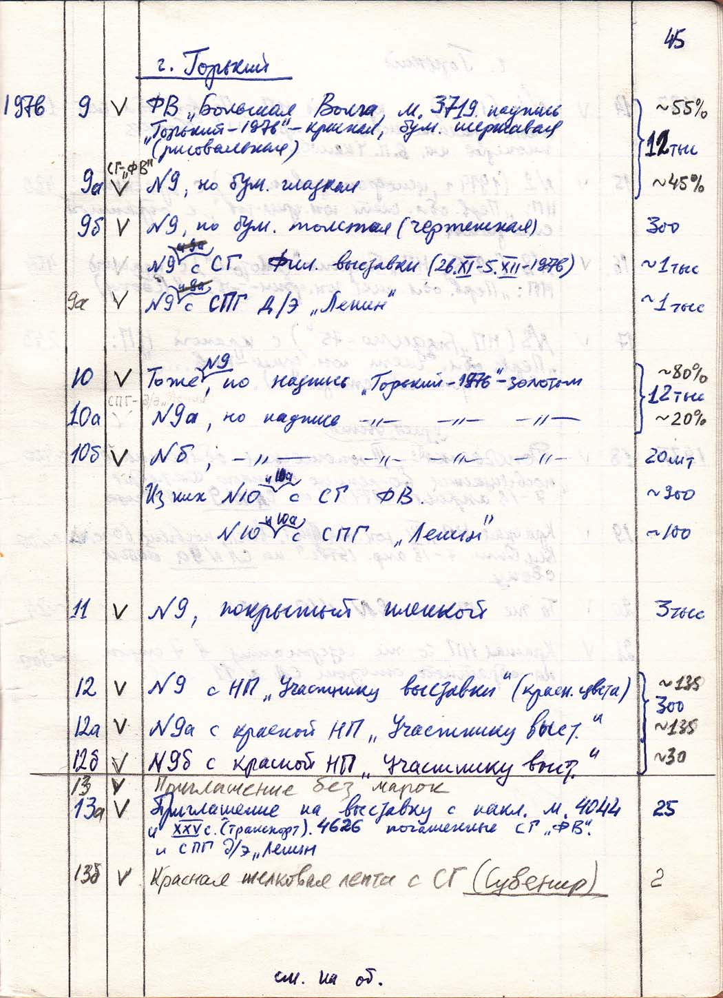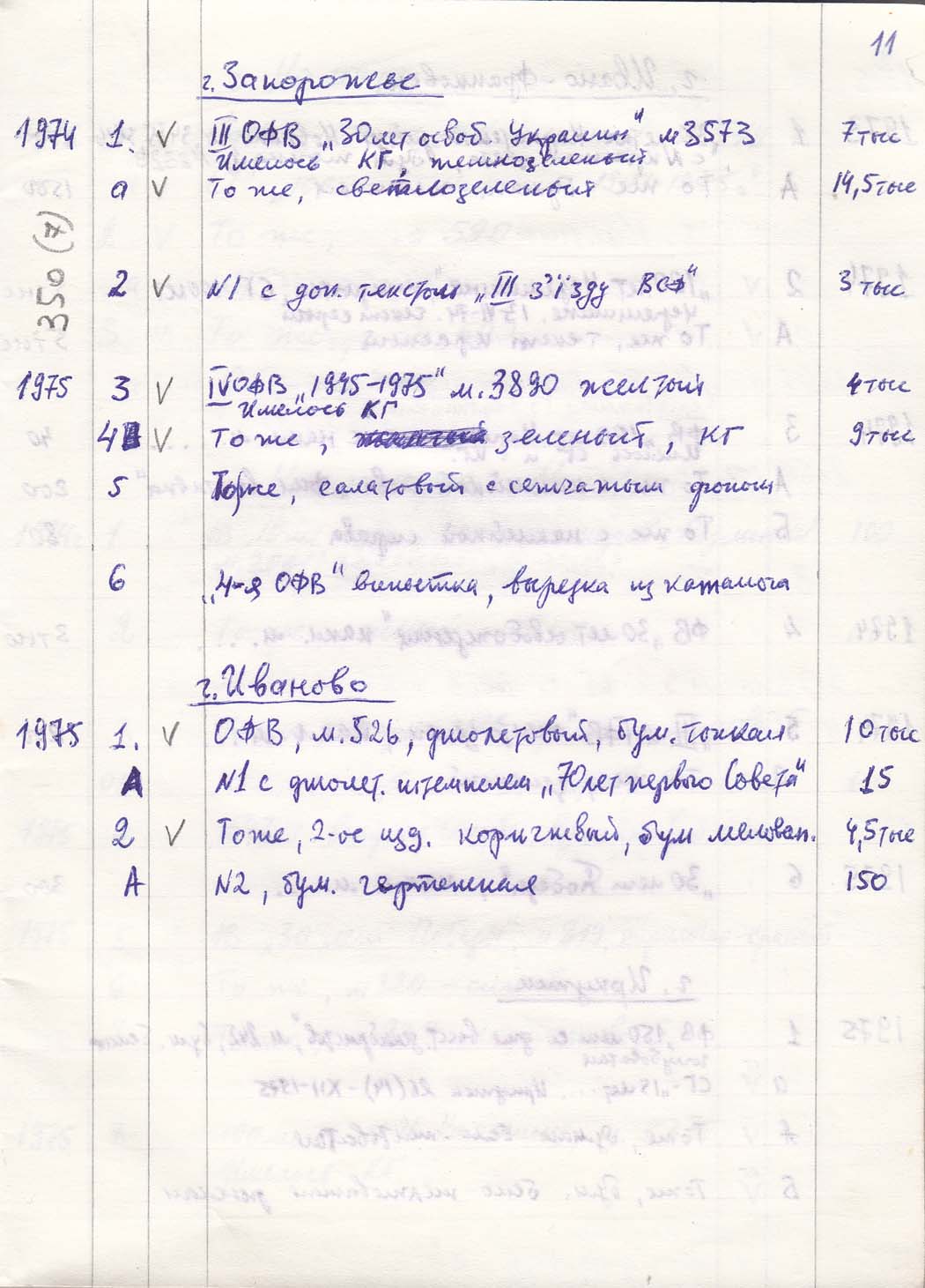 Перечень сувенирных филателистических изданий 1946 - 1976 гг. Рукопись. Автор: неизвестен. Год: неизвестен.