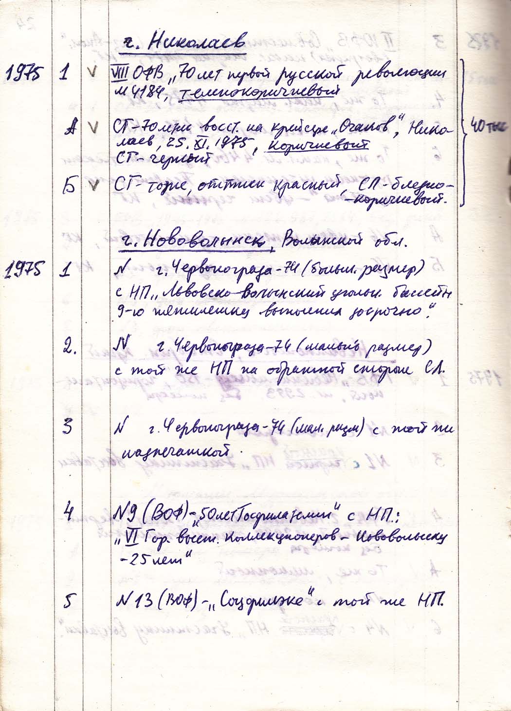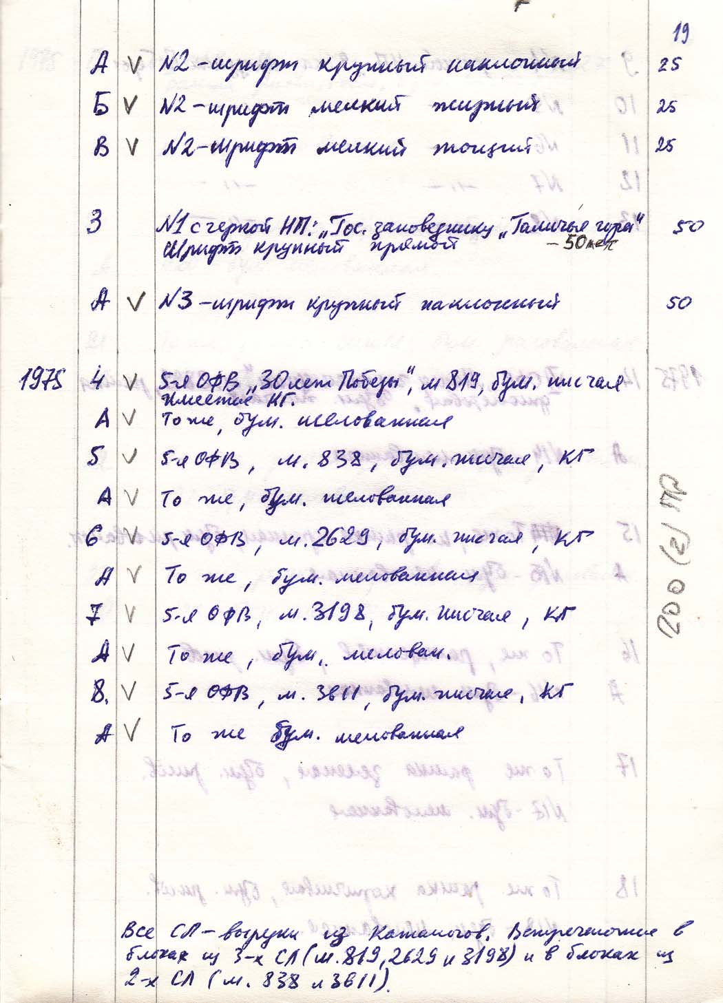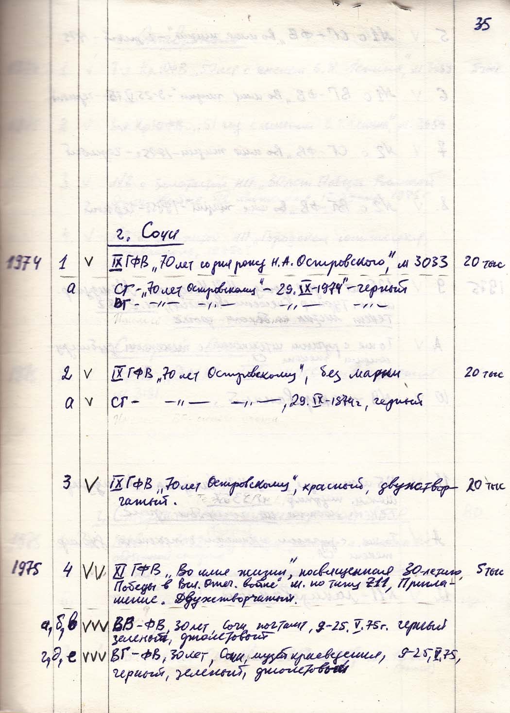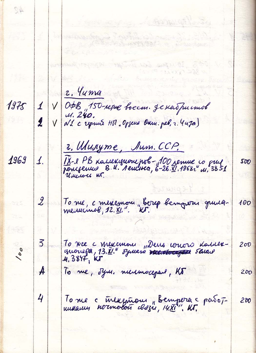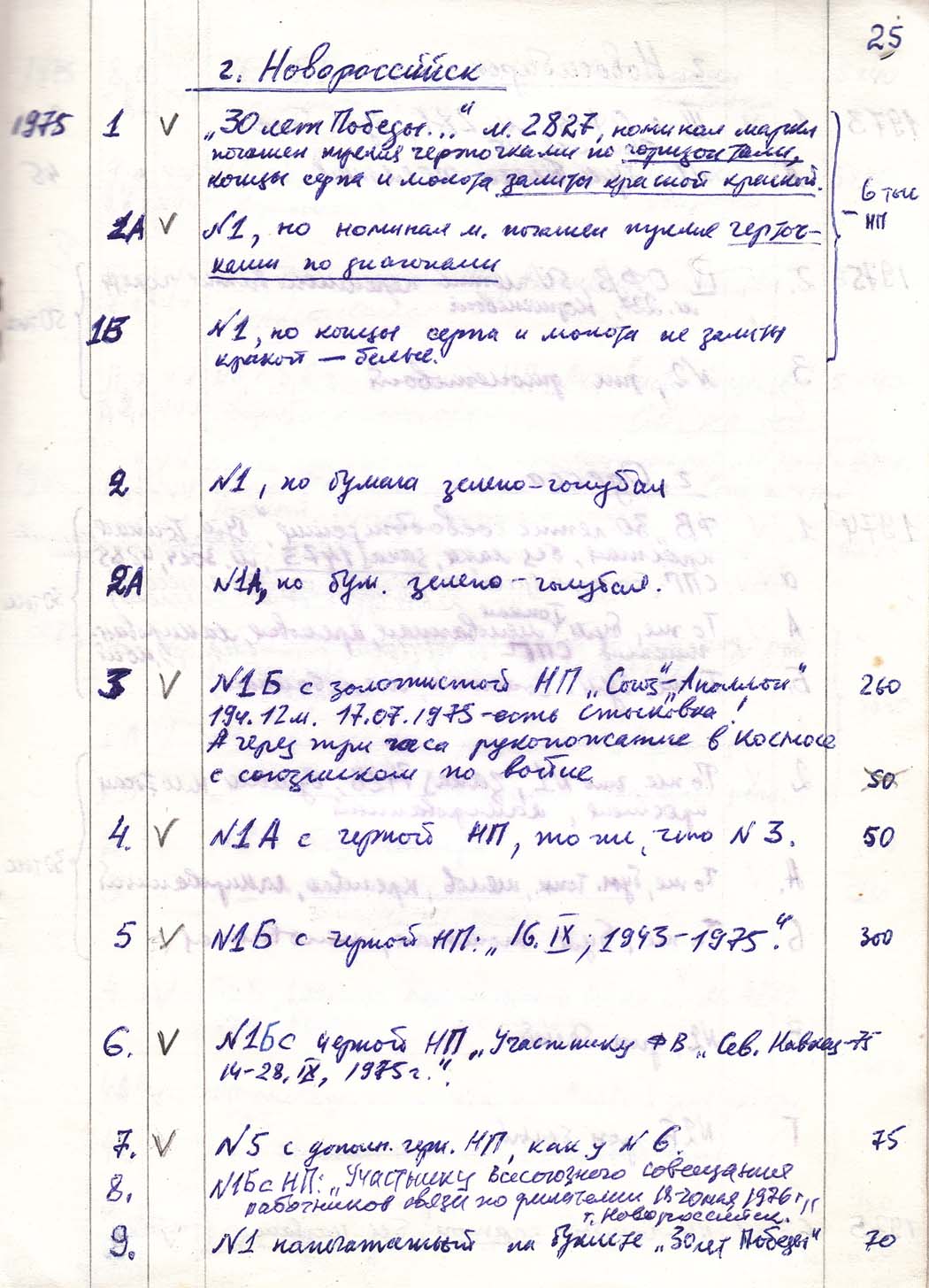 Перечень сувенирных филателистических изданий 1946 - 1976 гг. Рукопись. Автор: неизвестен. Год: неизвестен.