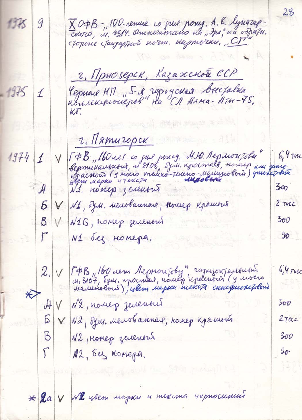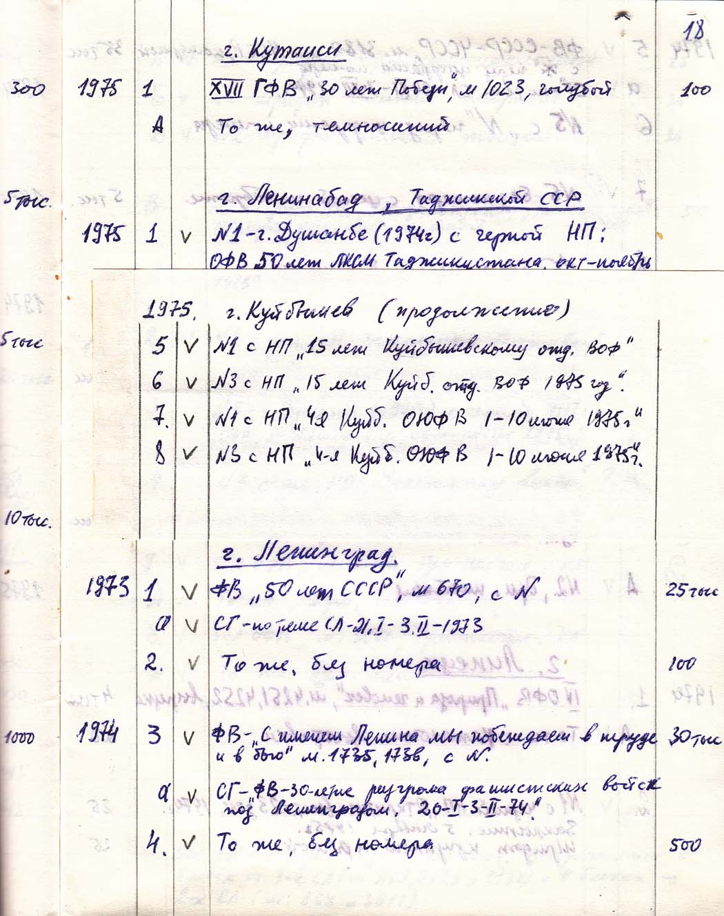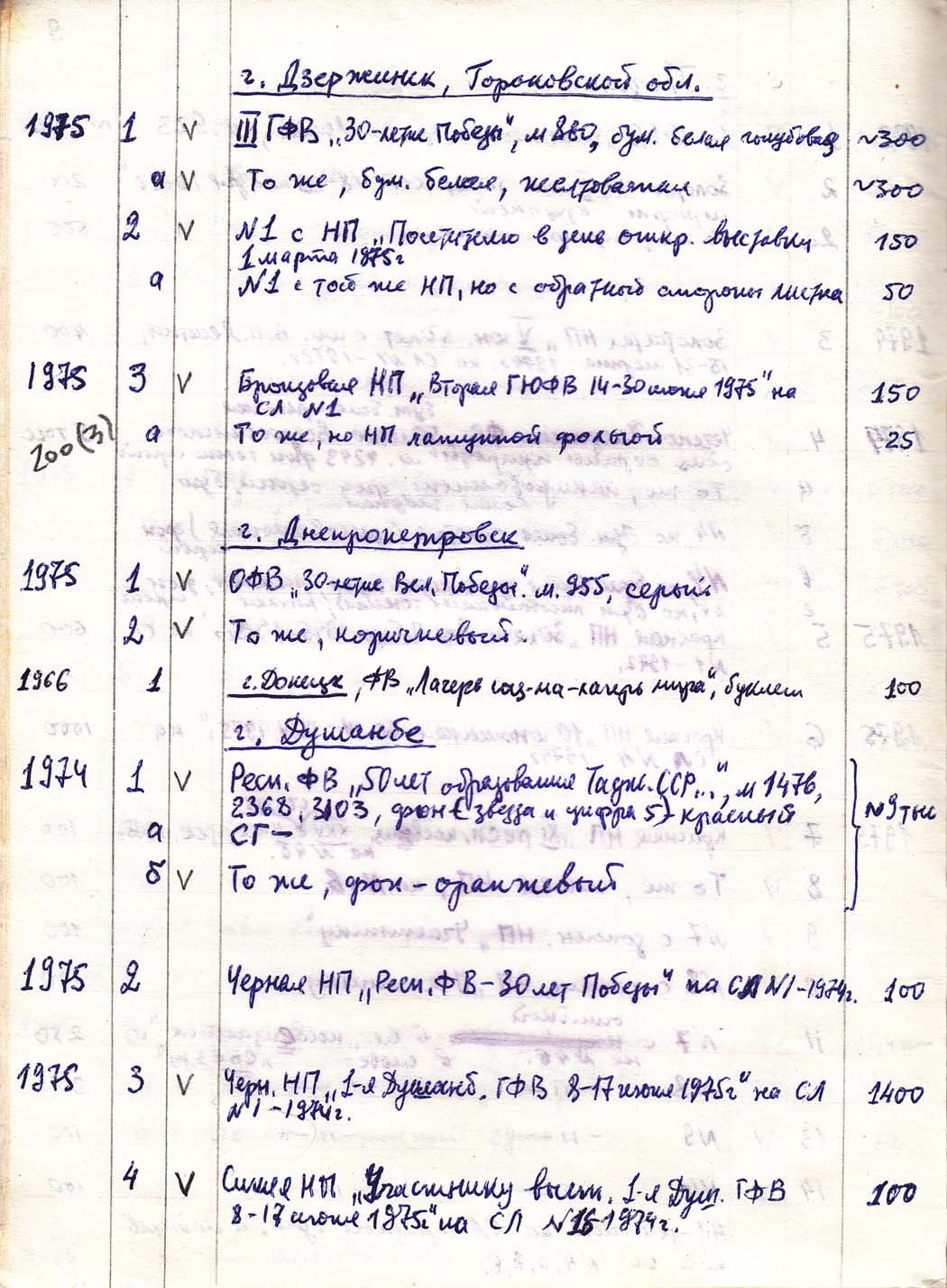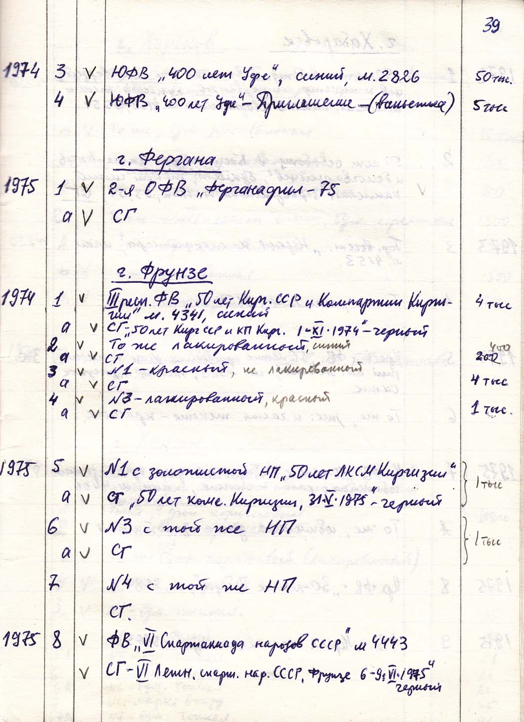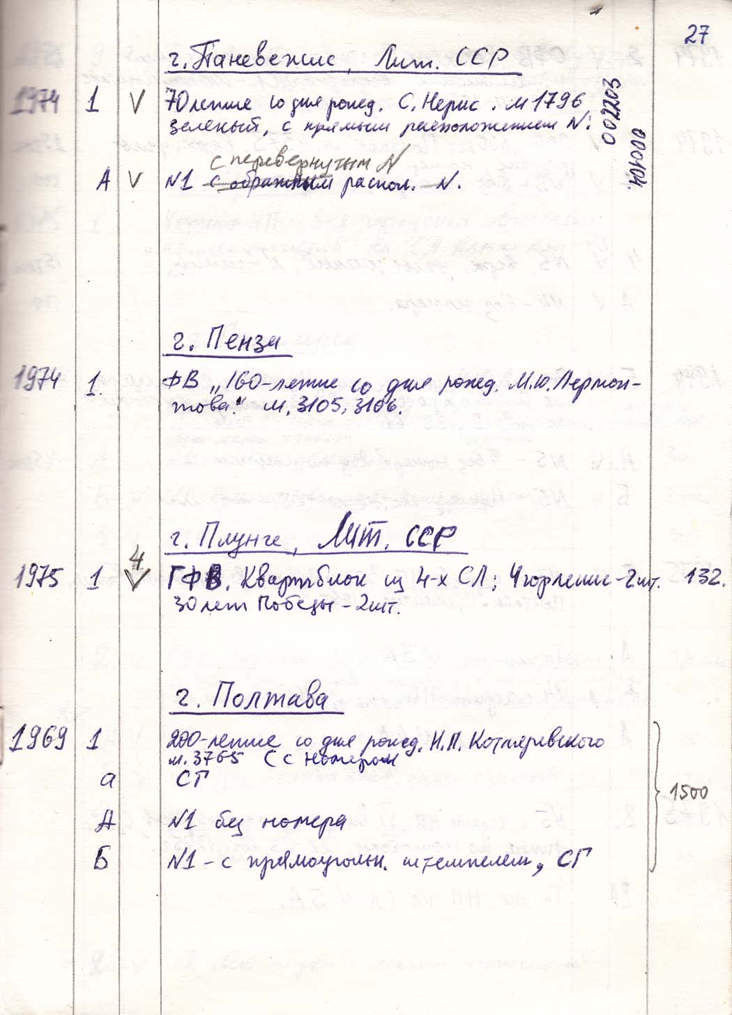 Перечень сувенирных филателистических изданий 1946 - 1976 гг. Рукопись. Автор: неизвестен. Год: неизвестен.