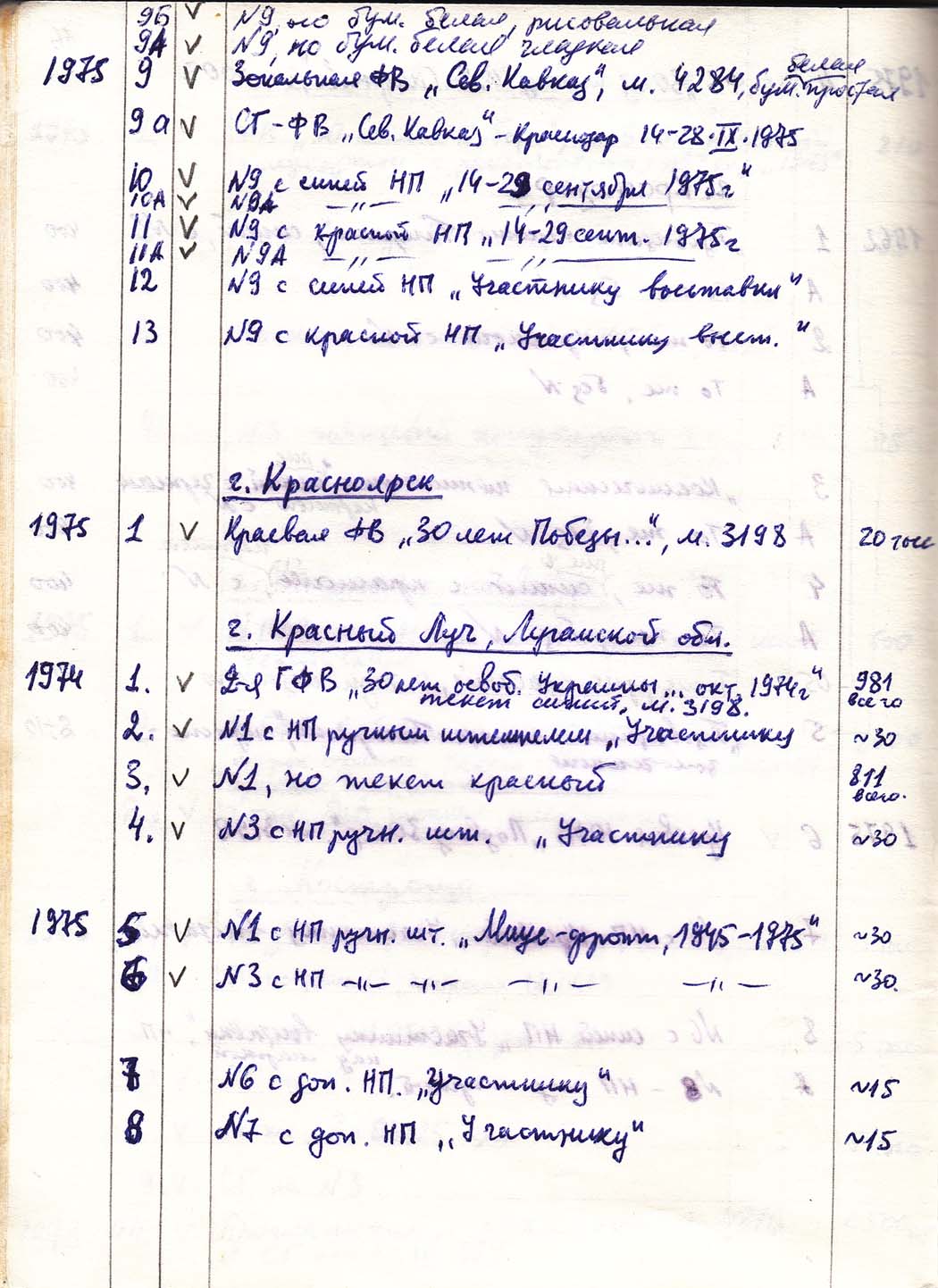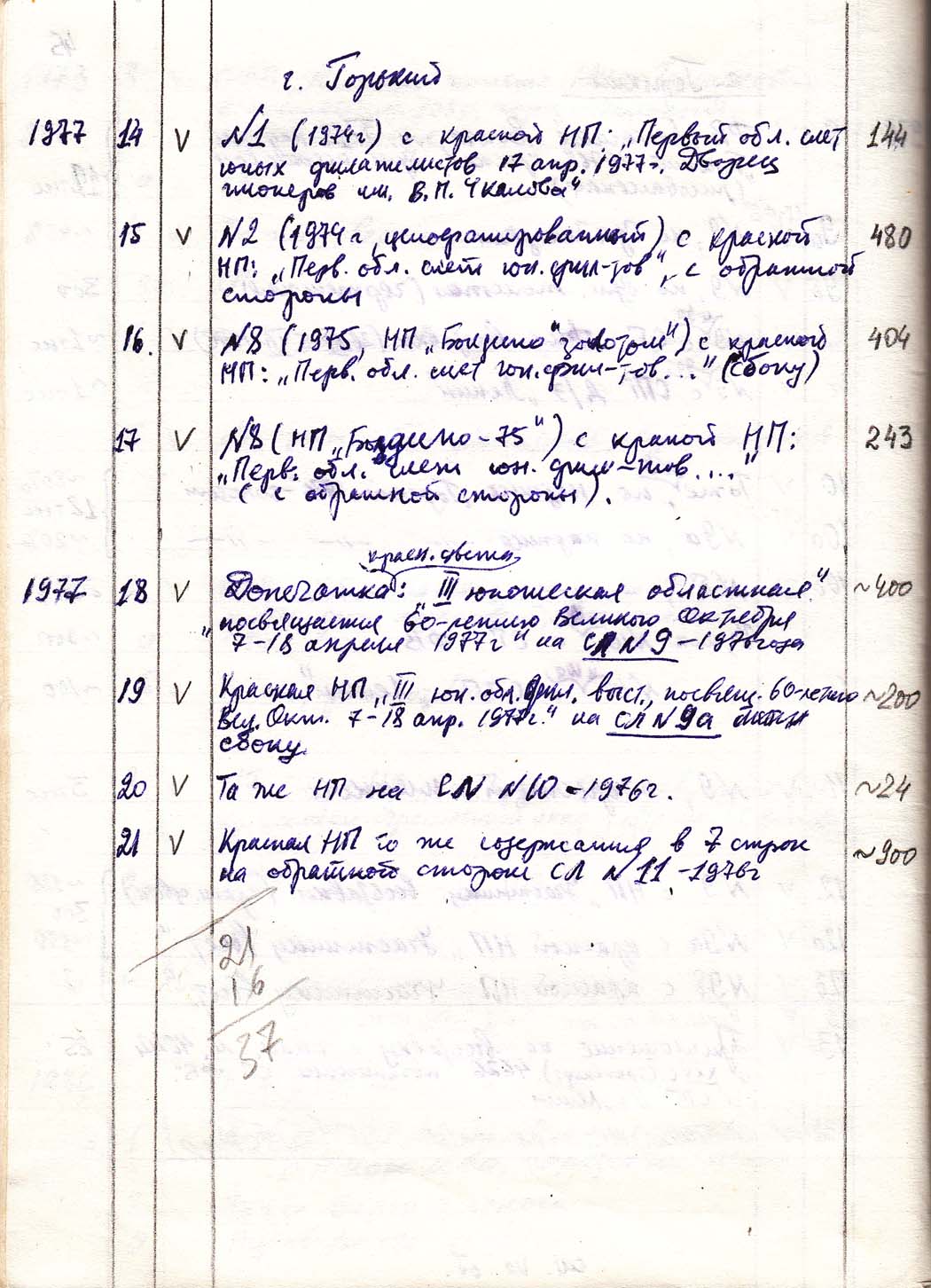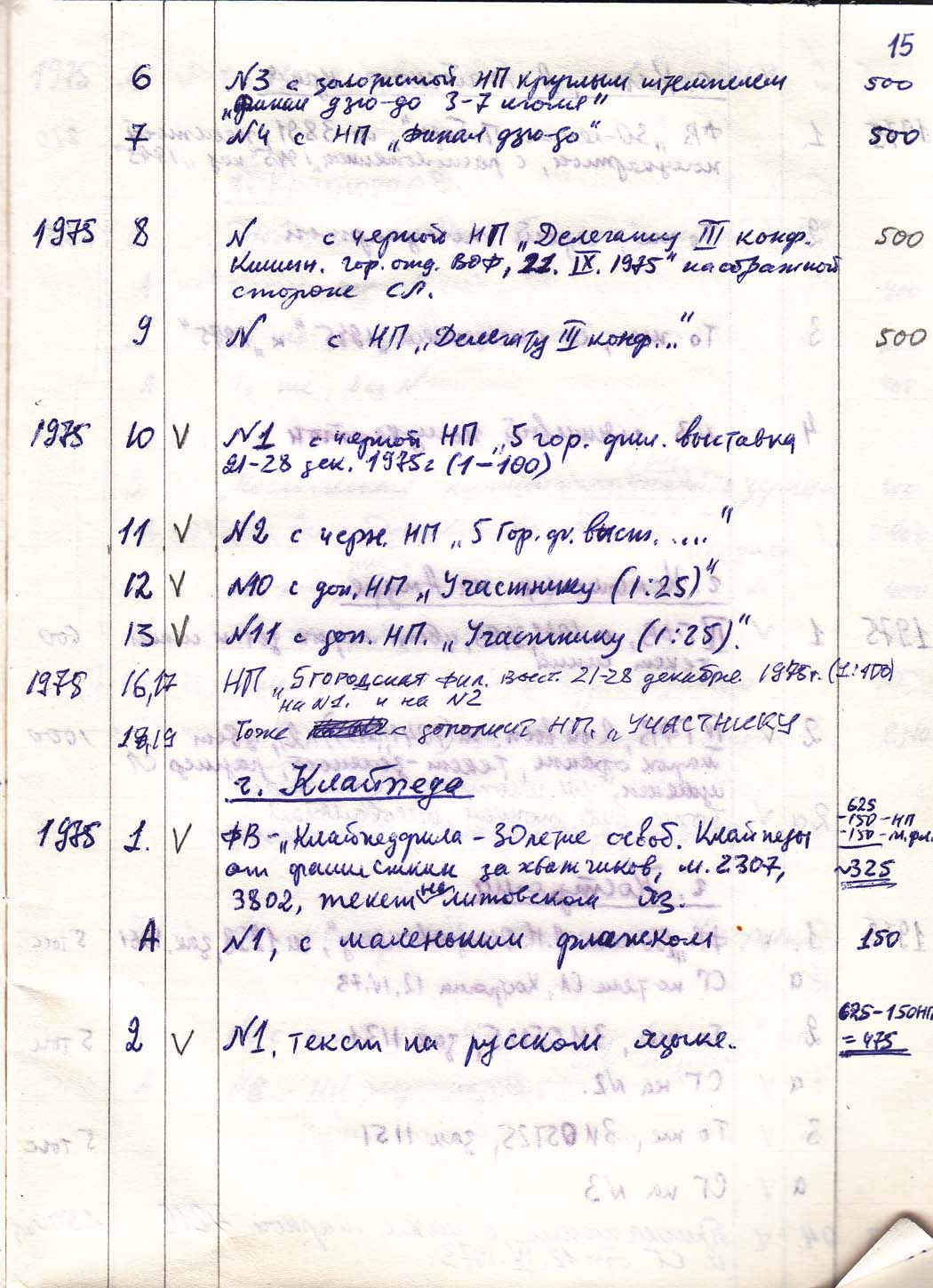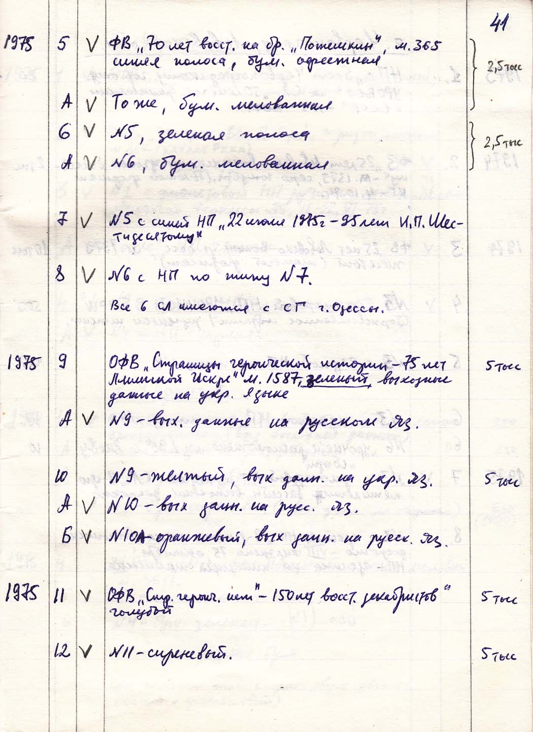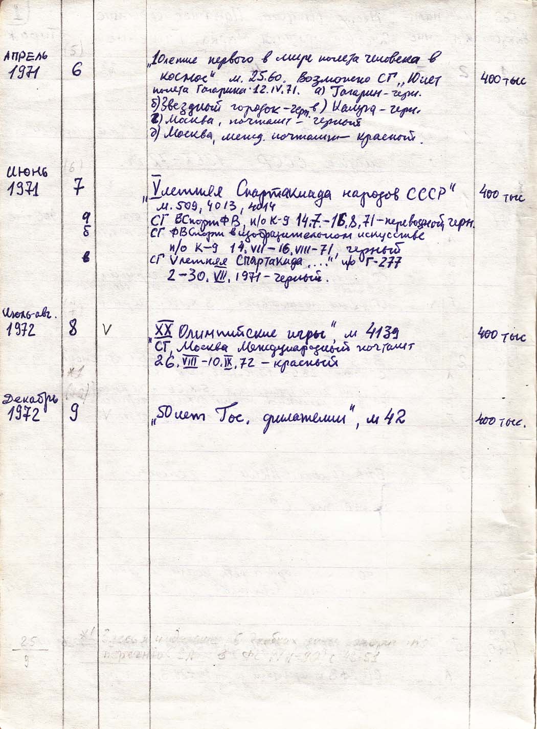 Перечень сувенирных филателистических изданий 1946 - 1976 гг. Рукопись. Автор: неизвестен. Год: неизвестен.
