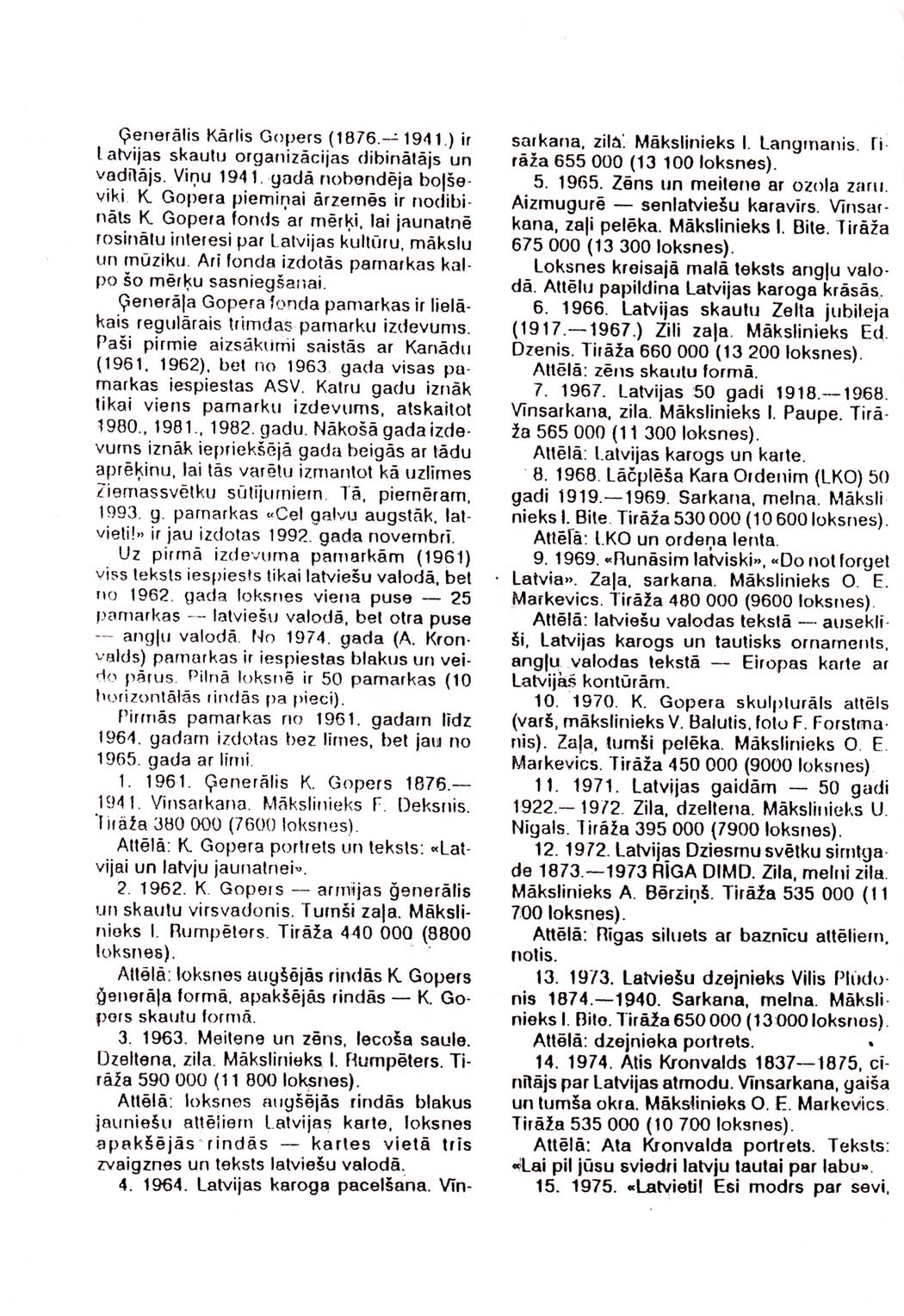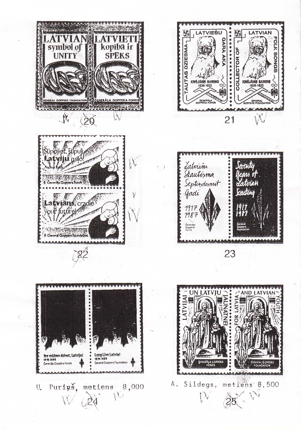 Латвийский каталог виньеток Фонда генерала Гоппера.