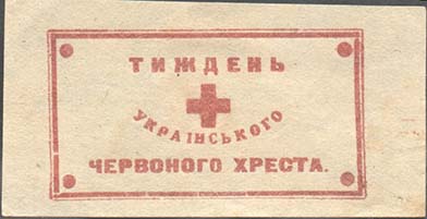 1925(?) г.   Разм. рамки 48,5 х 26 мм. Одноцветная печать на белой бумаге. В центре красный крест. Текст на украинском языке в три строки: «Неделя Украинского Красного Креста».