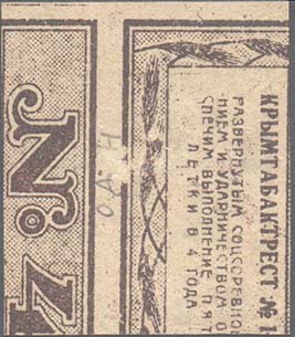 1934 г. Май. Разм. 55 х 55 мм. Одноцветная печать на бумага различных видов. В центре в прямоугольной рамке разм. 38 х 46 мм в центре текст в восемь строк: «Дорогой товарищ! Будь первым в рядах культпохода – массового движения миллионов трудящихся масс за культуру, за социализм. Все в ряды ОДН-ДНА». Сверху текст: «Культгривенник». Внизу мелким шрифтом выходные данные: «Лито 63 4-я Гост 2179-30000».