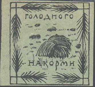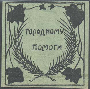 | Разм. рамки 47 х 48 мм. В прямоугольной рамке в центре в обрамлении венка из пшеничных колосьев текст в две строки: «Голодному помоги». | |||||||