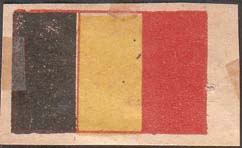 1914 г. Виньетки в виде флагов стран-союзниц России в Первой мировой войне разм. 40 х 23 мм. Одноцветная, двухцветная и трехцветная печать на белой бумаге.