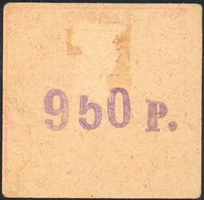 | Надпечатка номинала: «950 р.» горизонтально на оборотной стороне знака красного цвета. | |||||