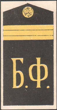 | Погон с тремя поперечными лычками и буквами: «Б.Ф.». | |||||