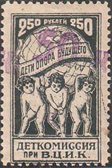1925 г. Надпечатки новых номиналов на марках первого всесоюзного выпуска Деткомиссии при ВЦИК.