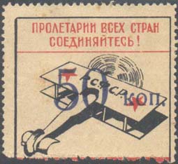 1926(?) г. Синяя (?) надпечатка нового номинала на агитационной виньетке одесского выпуска, см. Том 2. (О).