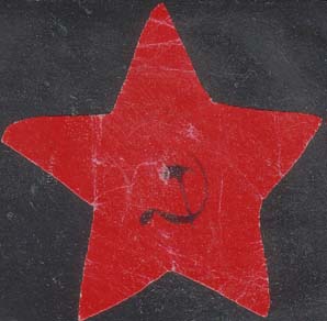 1927 г. 01.05.1927 г. Виньетка в форме пятиконечной звезды разм. 50 х 50 мм. Одноцветная печать на глянцевой, окрашенной с лицевой стороны бумаге. В центре звезды на сплошном фоне ручным штампом серп и молот.
