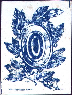 1916 г. 06.-07.03.1916 г. 1916 г. (06.-07.03.1916 г.). Разм. 46 х 62 мм. Одноцветная печать на толстой желтоватой бумаге. В центре кокарда на фоне лавровой вет-ви. Слева внизу мелким шрифтом выходные данные: «Лит. Соломонова, Минск».