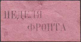 1919(?) г. Разм. 45 х 23 мм. Одноцветная печать на розовой бумаге. В центре текст в две строки: «Неделя фронта».