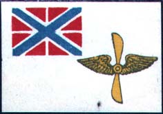 1915(?) г. Разм. 39 х 27 мм. Трехцветная печать на белой бумаге. Виньетка в виде военно-морского флага.