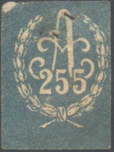 1915(?) г. Разм. 26 х 36 мм. Одноцветная печать на белой бумаге. В центре в обрамлении венка вензель «А» и цифры «256».