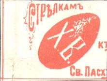1917(?) г. Разм. 37 х 29 мм. Одноцветная печать на белой бумаге. В центре яйцо с буквами «Х» и «В». Текст в три строки: «Стрелкам к Св[етлой]. Пасхе».