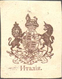 1915(?) г. Разм. 39 х 50 мм. Одноцветная и двухцветная печать на толстой белой бумаге. Гербы Италии и Черногории. Под гербом название страны.