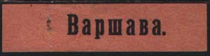 1915(?) г. Разм. ≈ 48 х 12 мм. Виньетки с названиями городов Царства Польского. Одноцветная печать на бумаге различных цветов.