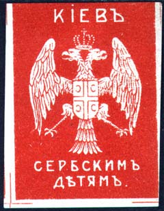 1915(?) г. Разм. 39 х 51 мм. Одноцветная печать на белой бумаге. В центре герб Сербии. Сверху текст: «Киев». Внизу продолжение текста в три строки: «Сербским детям».