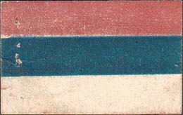 1915 г. Разм. 45 х 30 мм. Многоцветная двухсторонняя печать на белой бумаге. Зубц. 11 1/2. На лицевой стороне новый государственный флаг России. На оборотной стороне номинал, ниже текст в две строки: «В пользу семейств призванных на войну».