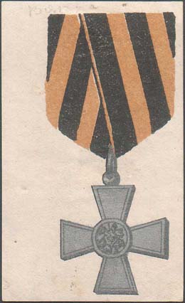 1915(?) г. Разм. 43 х 71 мм. Трехцветная печать на белой бумаге. В центре Георгиевский крест на колодке.