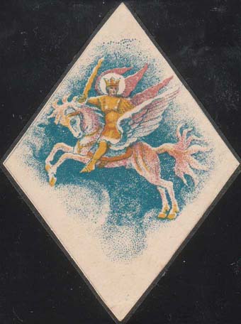 1916 г. 26.10.1016 г. Ромб разм. 61 х 76 мм. Трехцветная печать на белой бумаге. Георгий Победоносец на коне с мечом в руке на фоне облаков.