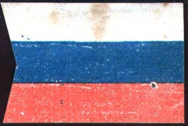 1915(?) г. Разм. 44 х 29 мм. Двухцветная печать на белой бумаге. Виньетка в виде флага России. Левый край вырезан в виде фестона.