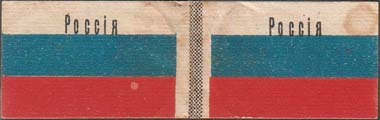1915(?) г. Разм. 61 х 15 мм. Двухцветная, трехцветная и многоцветная печать на белой бумаге. Виньетки в виде флагов стран-союзниц России в Первой мировой войне. На флаге название страны.
