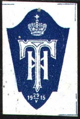 1915 г. 29.05.1915 г. Всероссийский сбор. Разм. 25 х 39 мм. Одноцветная печать на сероватой бумаге с мелованным верхним слоем. В центре эмблема Комитета. Внизу на щитке дата: «19 29/V 15». По углам знака разграничительные линии.