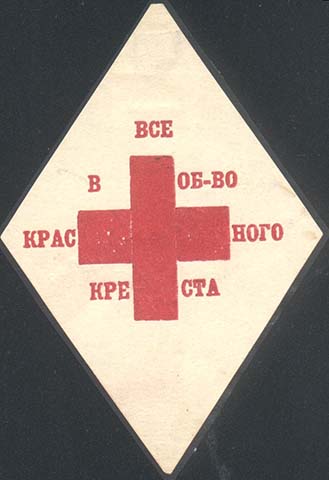 1928 г. 21.11.1928 г. 1928 г. (21.11.1928 г.). Ромб разм. 80 х 54 мм. Одноцветная печать на белой бумаге. В центре красный крест. Текст в четыре строки: «Все в Об-во Красного Креста».
