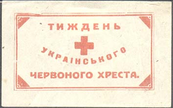 1925(?) г. Разм. рамки 48,5 х 26 мм. Одноцветная печать на белой бумаге. В центре красный крест. Текст на украинском языке в три строки: «Неделя Украинского Красного Креста».