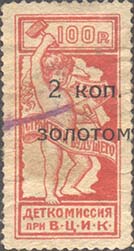 1924 г. Повторные надпечатки нового номинала на марках первого всесоюзного выпуска Деткомиссии при ВЦИК с надпечатками в золотой валюте.