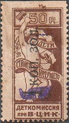 1924 г. Второй вспомогательный выпуск. Черная типографская надпечатки нового номинала на марках первого всесоюзного выпуска Деткомиссии при ВЦИК.