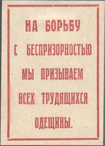 1925 г. Разм. 35 х 50 мм. Одноцветная печать на желтоватой бумаге. В прямоугольной рамке разм. 31 х 46 мм текст в пять строк: «На борьбу с беспризорностью мы призываем всех трудящихся Одещины».